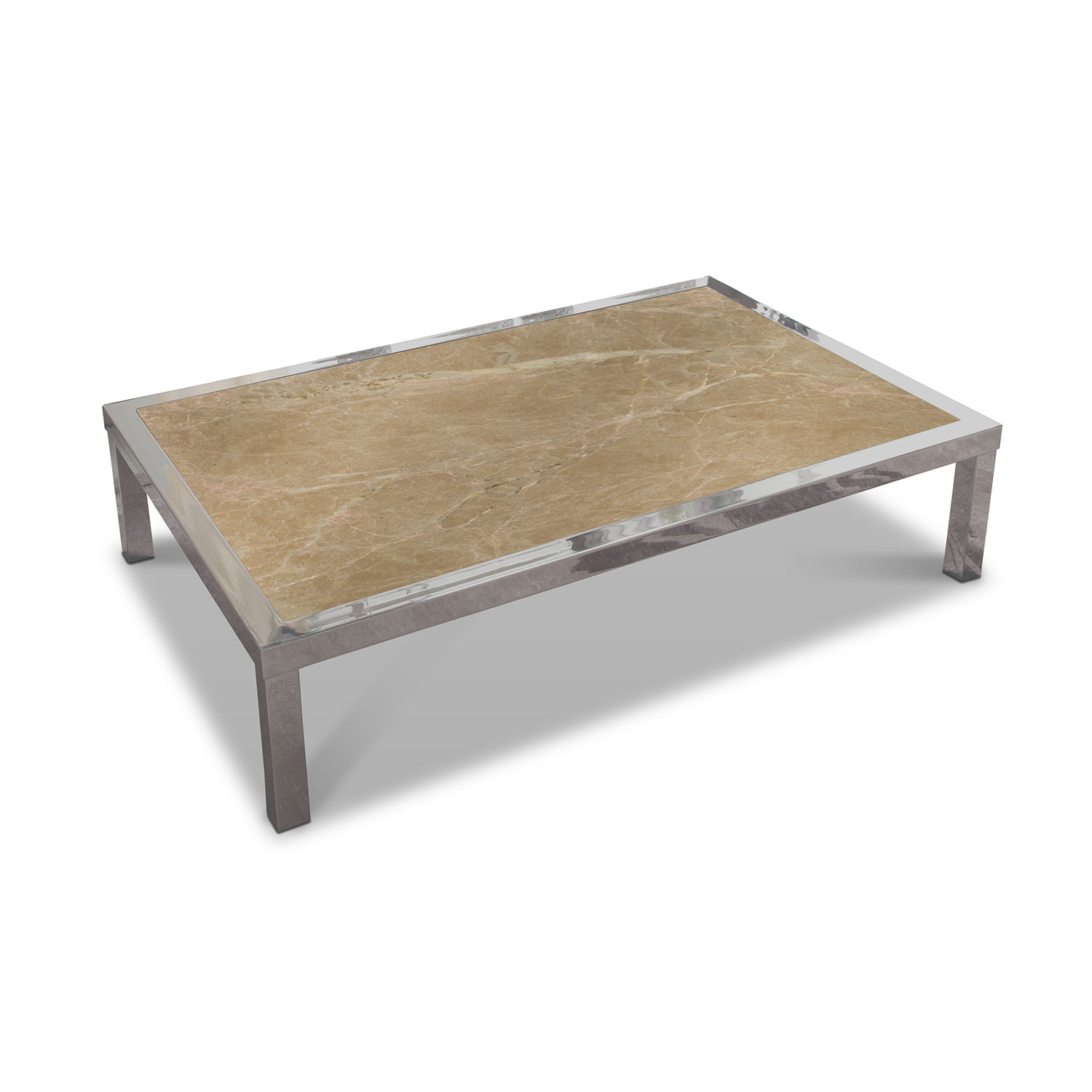 矩形鸡尾酒桌,镀铬不锈钢和大理石顶部,具有高光泽聚酯饰面。顶部为大理石。
