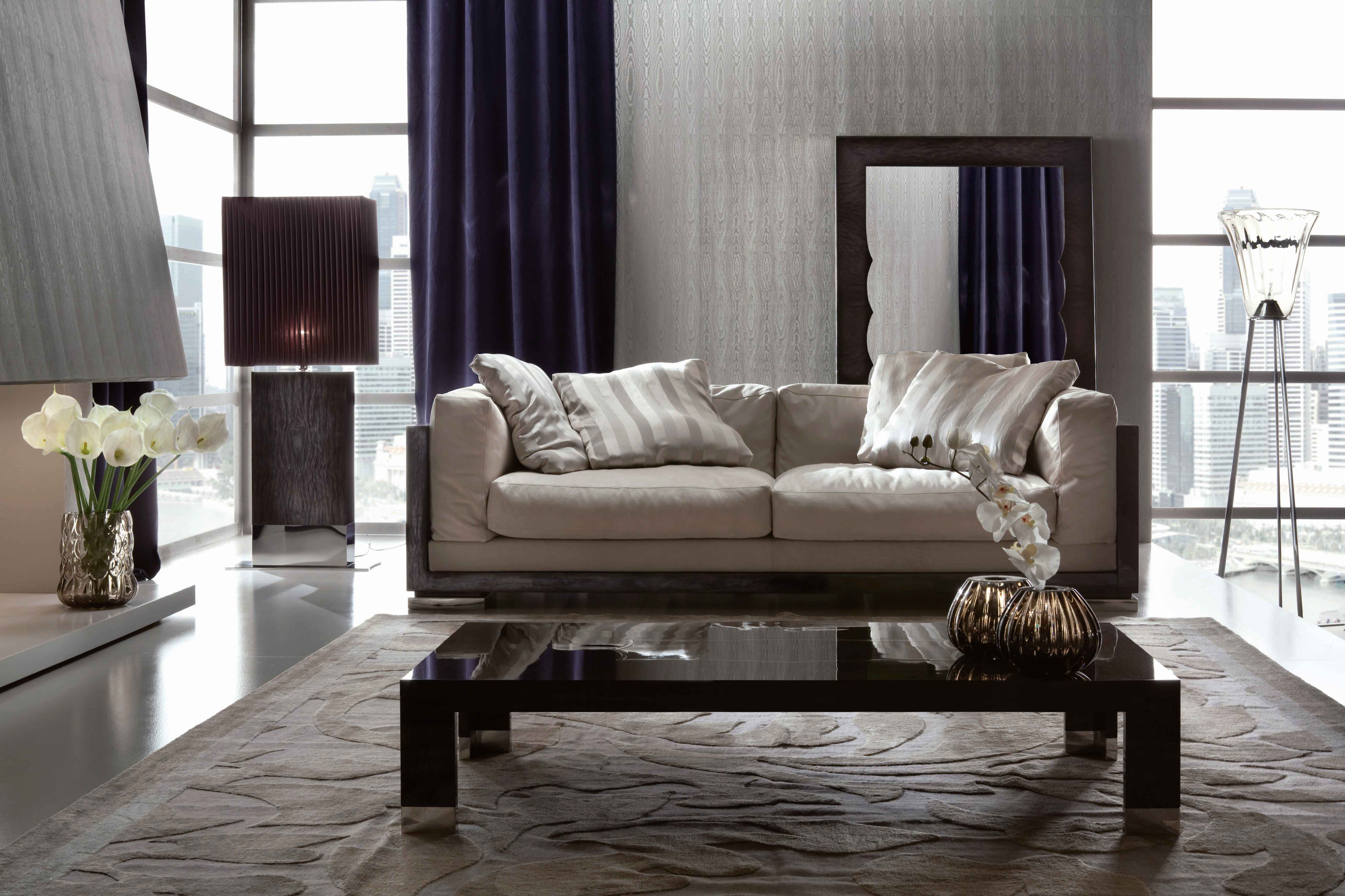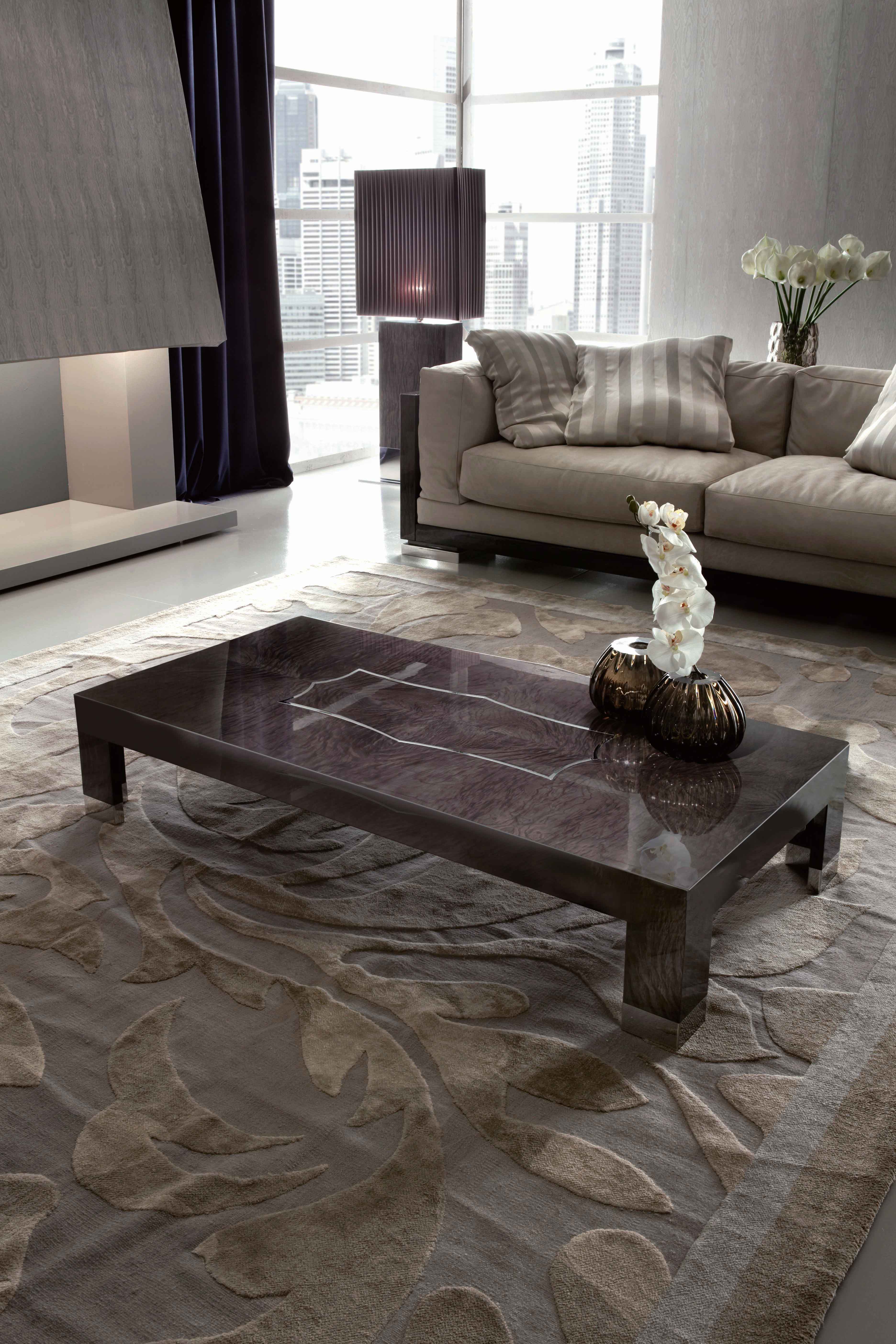 长方形鸡尾酒桌,摩卡日本塔莫毛皮贴面。