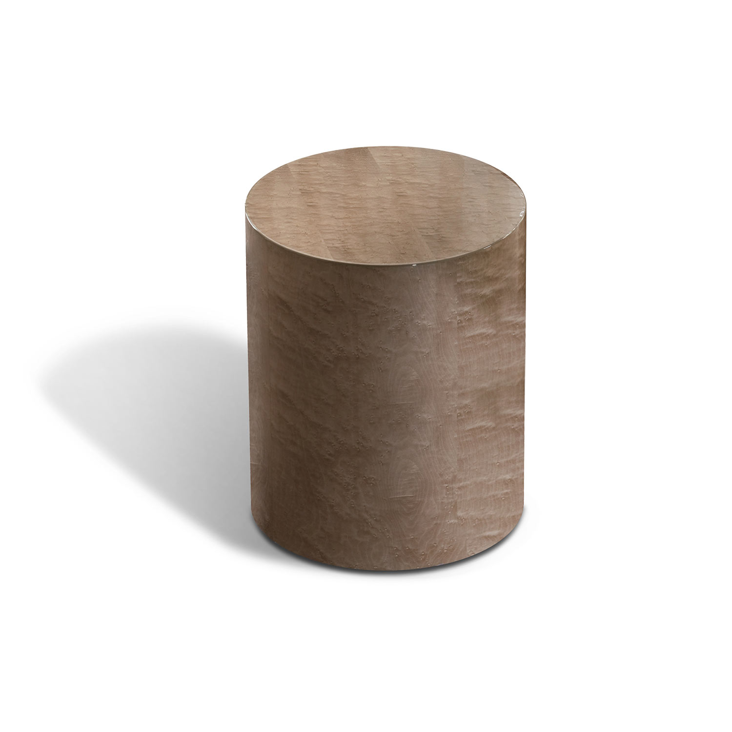 香槟鸟眼枫木贴面圆桌,带高光聚酯饰面。