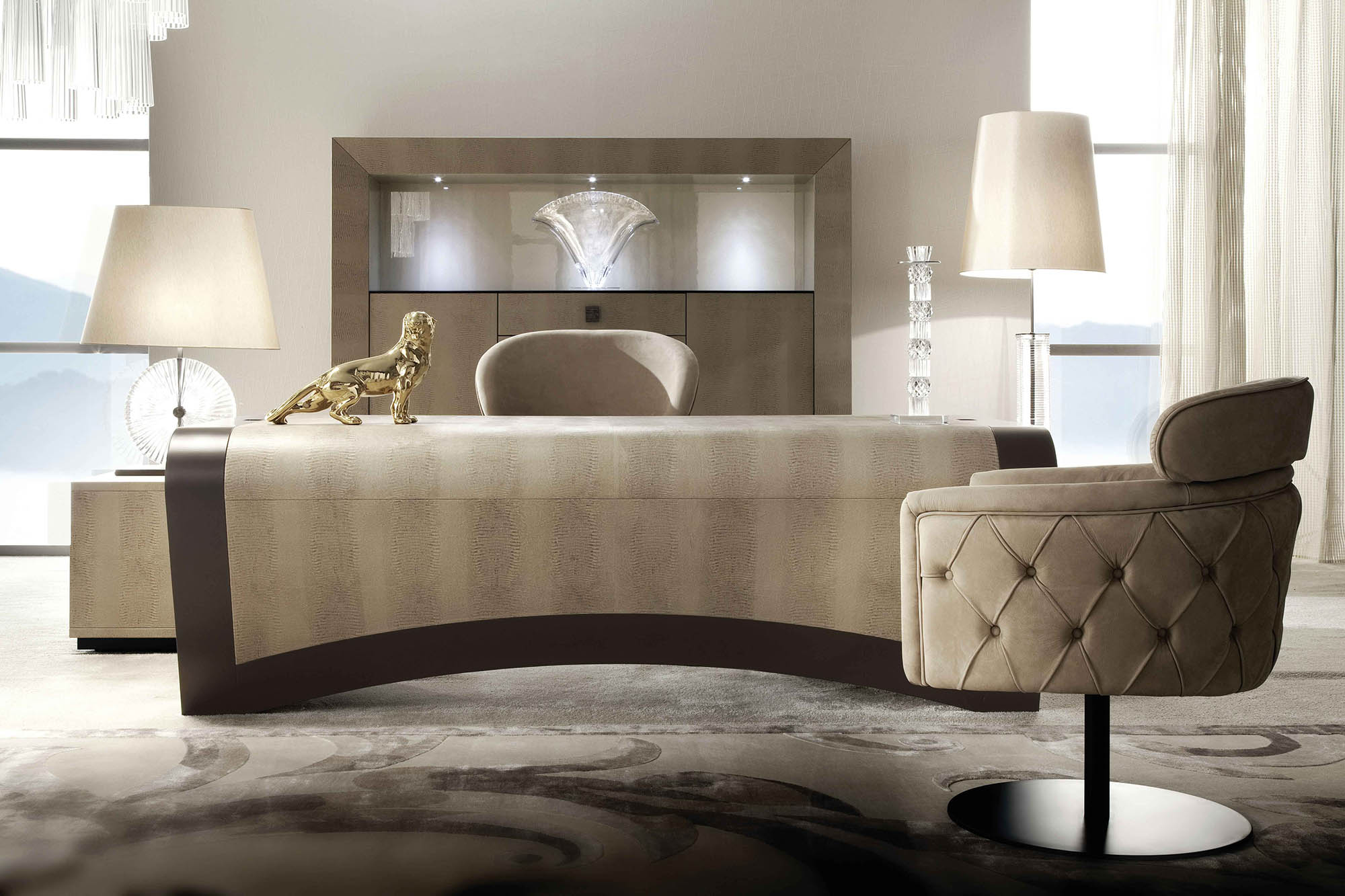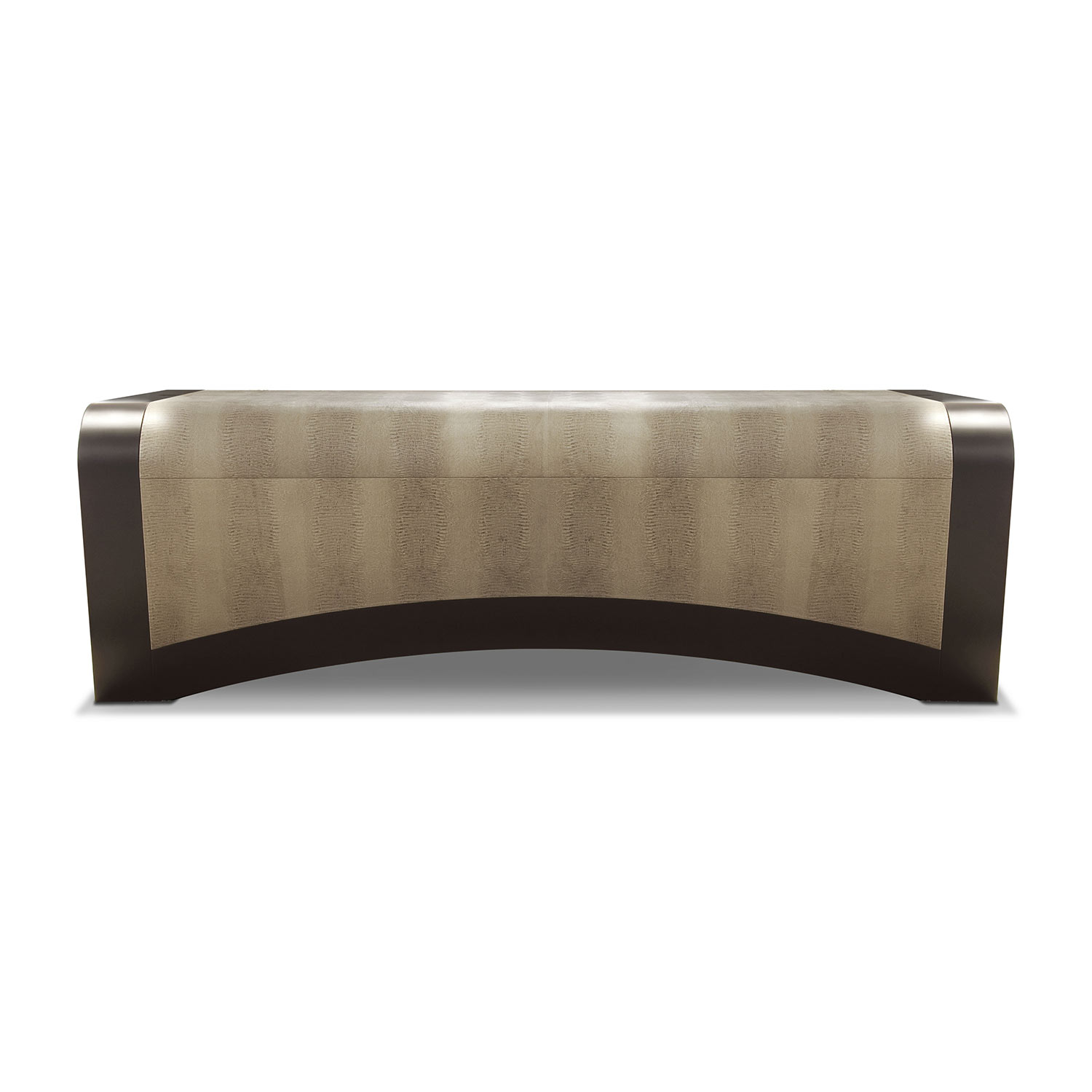 犰狳印花皮革书桌,搭配古铜色黄铜框架。1个全加长铅笔抽屉,底部采用犰狳印花皮革制成。
