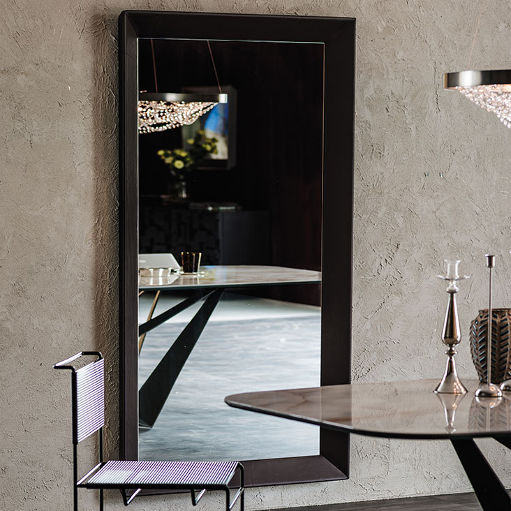 镜面或烟熏镜面玻璃壁镜或落地镜,镜框根据样品卡覆盖合成皮革或软皮革。