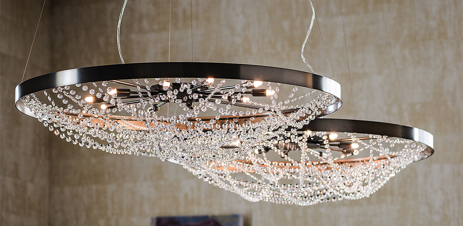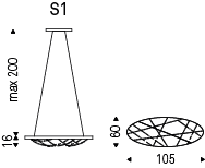与缎镍钢框架的吸顶灯。带有水晶吊坠的灯罩。包括灯泡。
