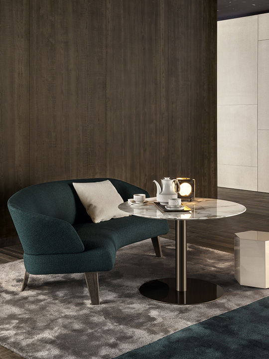 Bellagio"休息室"桌子系列不断扩展,包括底座和顶部的新饰面。底座采用管状金属制成,带有光泽的青铜漆面,而轮廓顶部有圆形和椭圆形版本,采用Sucupira贴面和彩色貂皮饰面或Bardiglio Nuvolato或Calacatta大理石装饰。Bellagio "Lounge"桌子的尺寸和饰面经过精心设计,可与2016年系列中的椅子(尤其是Reeves系列中的沙发和扶手椅)完美搭配。