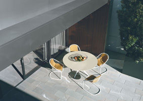 专为在任何环境中全面吸引人而设计和制造的桌子。现在,Claydon将其独特的固有"良好设计"扩展到也适用于户外使用的新版本。Claydon Outdoor保持了其设计的纯粹性和无可挑剔的级别,通过选择诸如可丽耐®的外部版本之类的材料来增强其实用性,其强度和耐用性的特性是众所周知的。桌子的底部是一个复杂的形状,其特点是宽度的连续,引人注目的变化。它由压铸铝制成,在视觉上更轻,更坚固的机身中重新诠释,涂成白色,带有灌木锤状纹理。