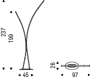 带框架的落地灯,采用石墨压纹漆钢 (GFM69) 和铜钢或黑铬 (06)。LED灯。