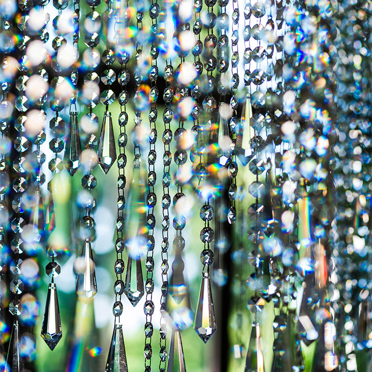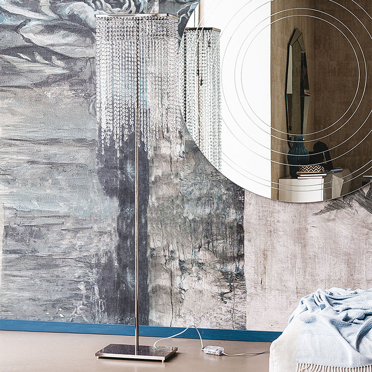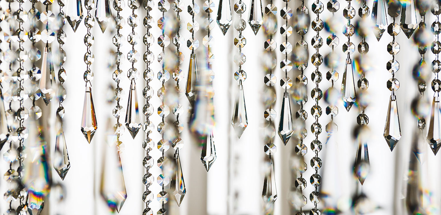 镀铬钢架吸顶灯、壁灯、落地灯和台灯 (08);玻璃吊坠制成的灯罩。包括灯泡。