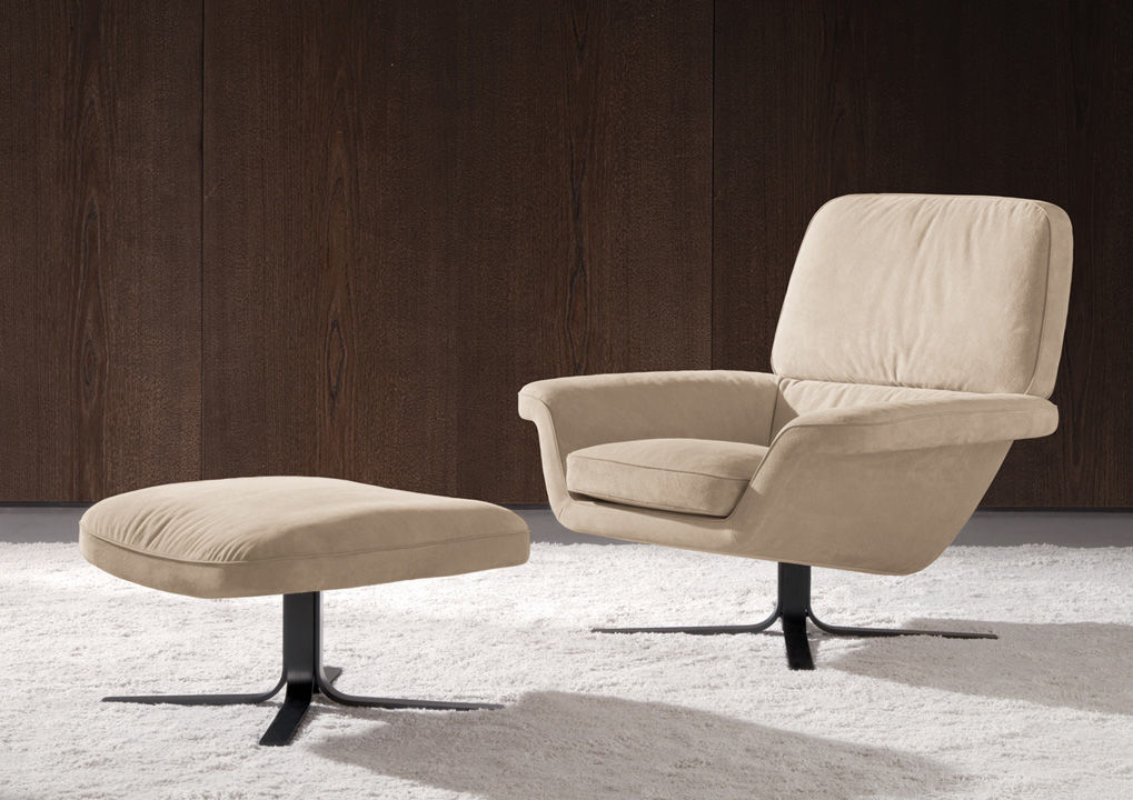一条蜿蜒的线条勾勒出Blake-Soft扶手椅上座椅和扶手的轮廓。槽形鹅绒内部衬垫赋予柔软度,使Blake-Soft格外舒适。