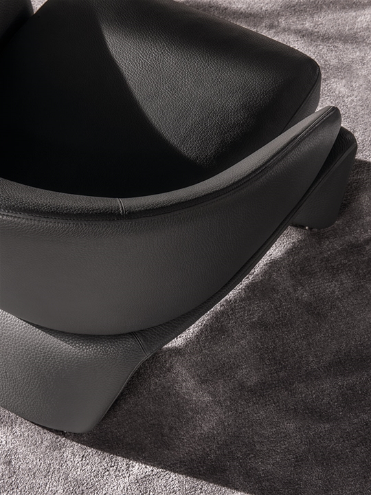 靠背的包络形状、支撑底座的流畅线条以及独特的内饰材料(皮革或织物)的选择,增强了哈雷扶手椅的雕塑形象,使其成为一款既高雅又舒适的椅子。