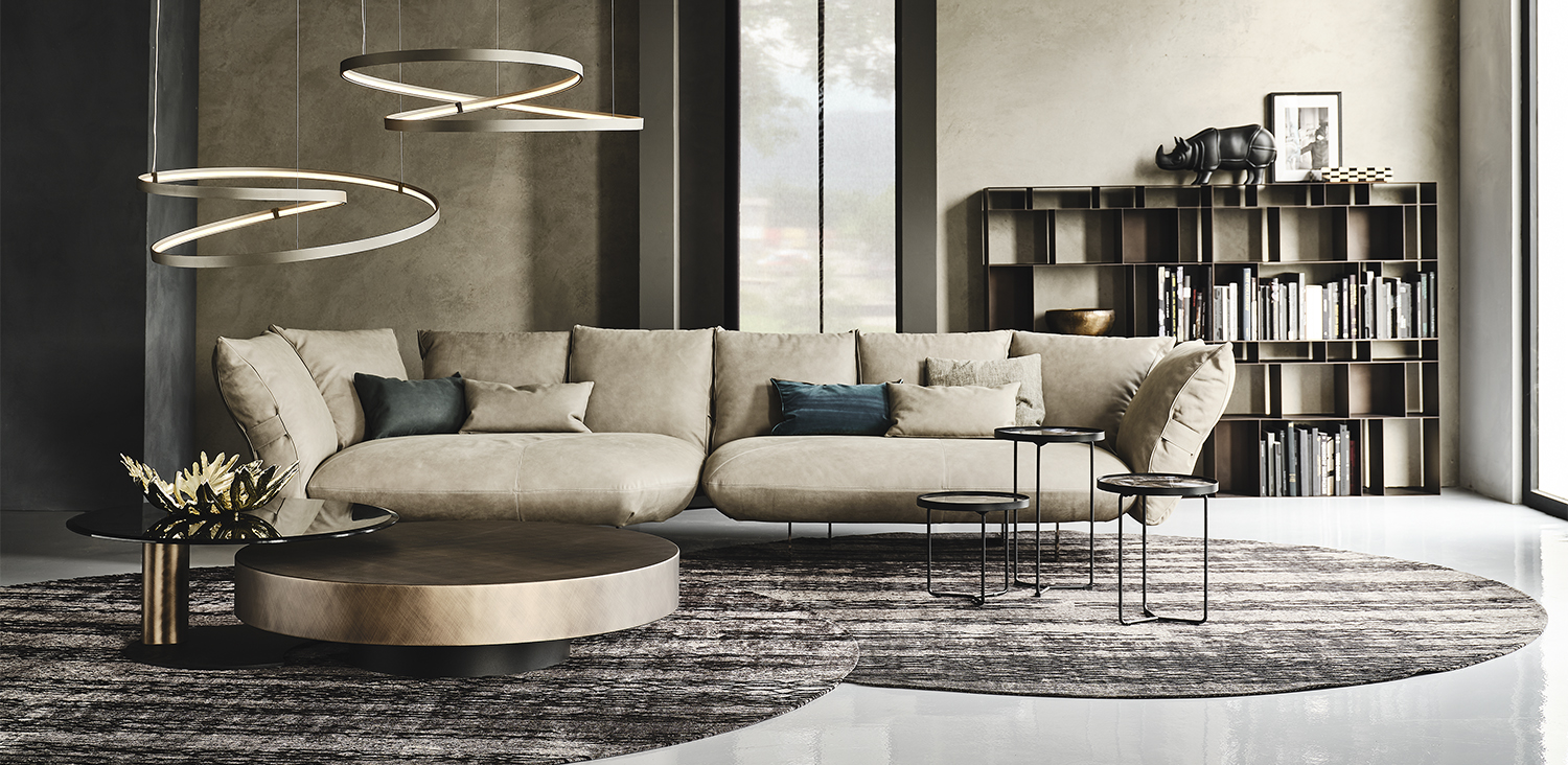 黑色 (GFM73) 压纹漆钢底座和拉丝青铜或拉丝灰色漆钢桌面的咖啡桌。在 BOND 和 DOUBLE BOND 版本中,主咖啡桌旁边是一张或两张咖啡桌,底座为黑色 (GFM73) 压花漆钢、拉丝青铜或拉丝灰色漆钢立柱和可旋转的烟熏斜面玻璃台面。