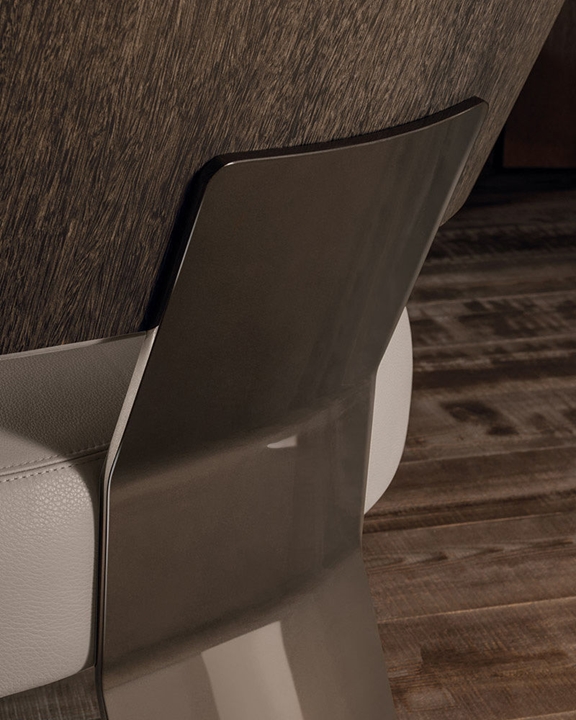 带有Sucupira贴面和染色Mink饰面的弯曲胶合板靠背粘合到结构聚氨酯和模制,柔性,高密度聚氨酯层的内壳上。扶手椅的背面放在金属支架上,带有光泽的青铜漆面,而前腿采用实心Sucupira木材制成,带有彩色貂皮色饰面。里夫斯"木"扶手椅可以与其同名的脚凳配对。