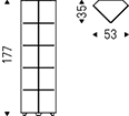 展示柜的框架和支脚采用黑色压花漆钢 (GFM73),门和侧板采用烟熏玻璃制成,带有黑色喷漆玻璃条纹。顶部和底部采用黑色磨砂玻璃,内部背面覆盖和绗缝柔软皮革或合成皮革,如样品卡所示。烟熏玻璃内部搁板。LED灯。