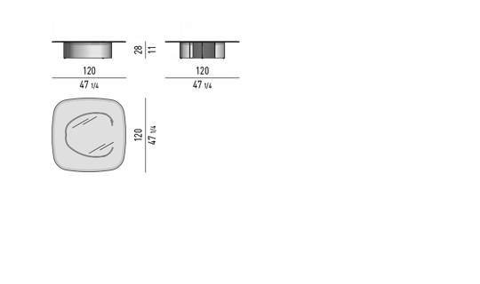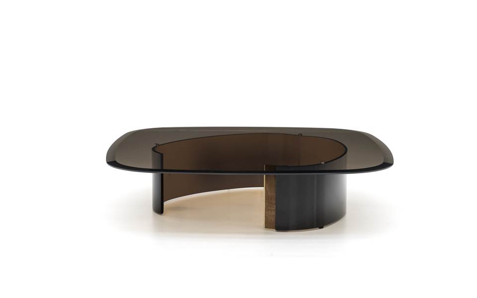 底座的形状透过优雅的顶部可见,采用圆形,方形和矩形古铜色玻璃,边缘处有精致的倒角。