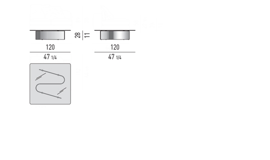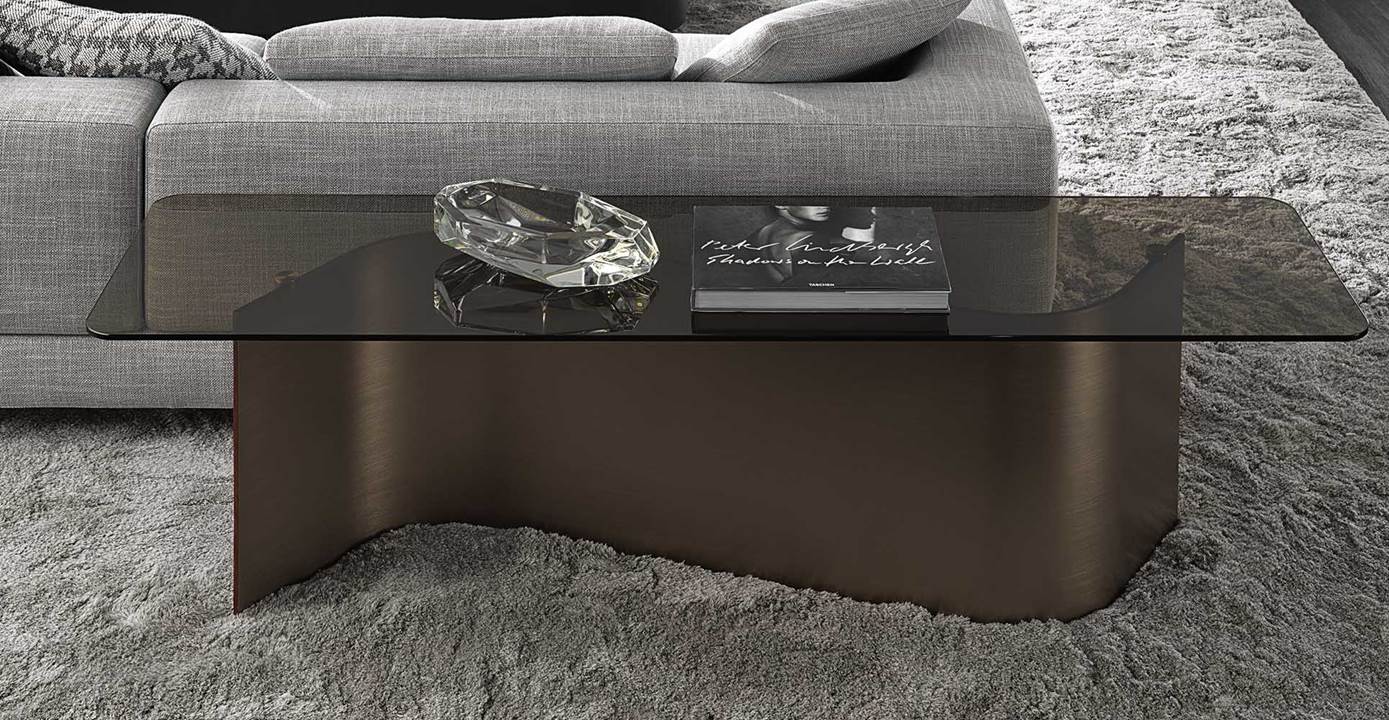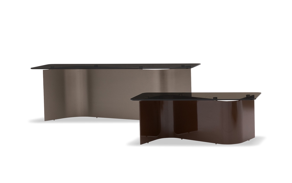 一个尖锐而决定性的标记使底座的金属板形成形状,其顶部是古铜色的玻璃表面。双色调,光泽和不透明,定义了支撑结构的两个表面,它将缎面青铜漆金属与Corten或Sand色光泽漆相结合。
