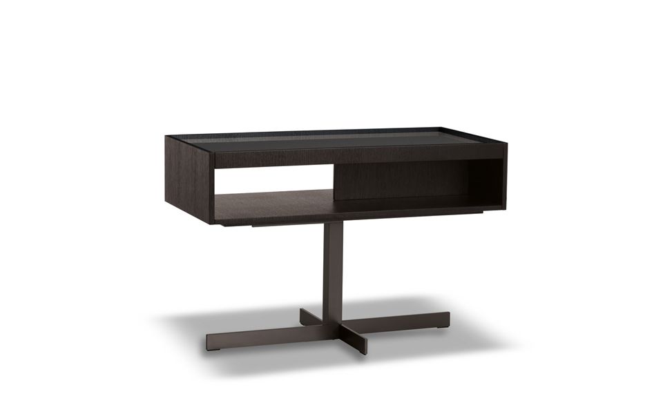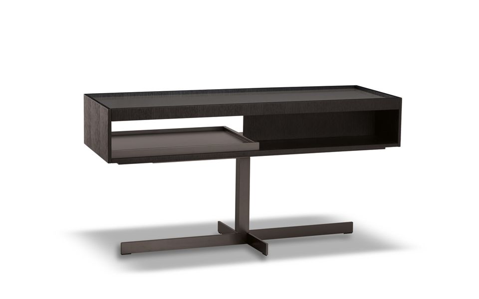 Close边桌完美地贴合了Yang沙发靠背之间的空间,提供了实用的表面:任何有用的物品都可以触及或整齐地存放在下面的隔间中,同时在沙发上舒适地放松。简单的金属底座以精致的缎面青铜色十字形地板底座结束。上部有一个带可拆卸托盘的隔间,可以在两侧进入,有两个版本:开放式孔摩卡漆橡木结构,光泽粘土色漆面顶部,内部托盘采用哑光粘土漆面,或带有哑光粘土漆框架和顶部以及橡木内部托盘,具有开孔Moka漆面。除了各种尺寸的边桌外,Close还包括一张控制台桌,一张桌子和一些床头柜。
