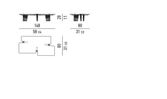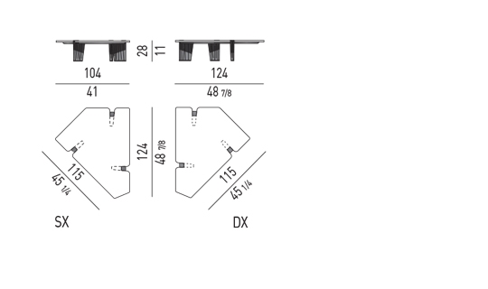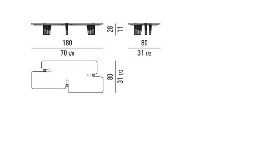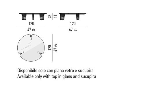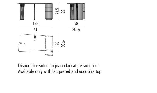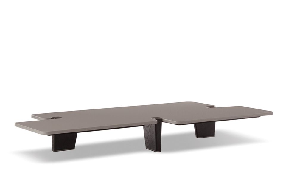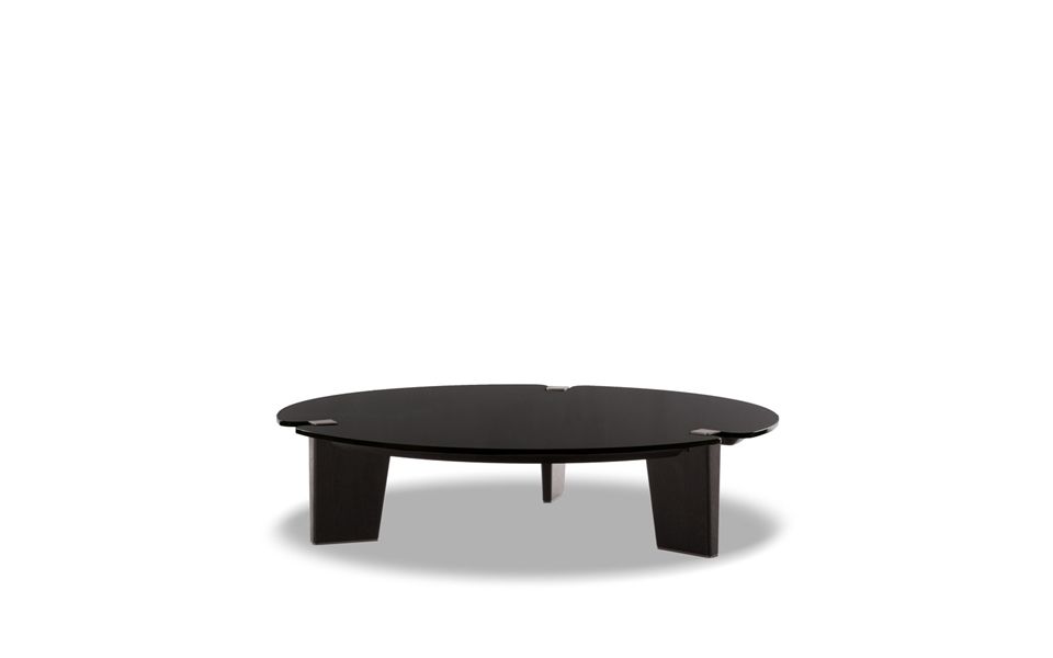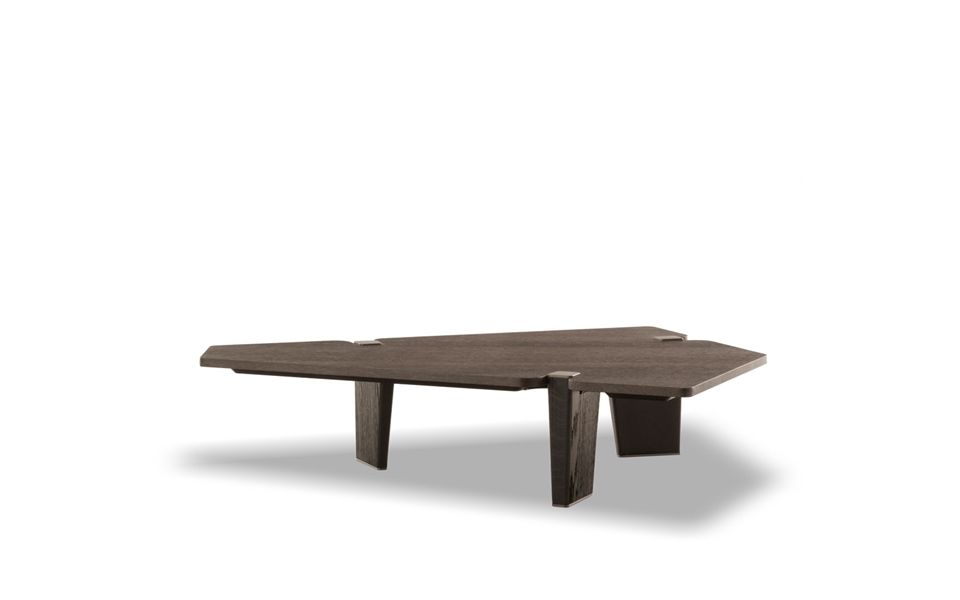 不常见形状的桌面放在实心拉丝橡木腿上,涂有黑色饰面。位于地板上的古铜色金属帽和位于腿部上端的具有相同饰面的板材是细节,为已经大胆个性的配饰增添了一丝精致感。桌面上可用的许多饰面反映了不同材料的魅力:从带有染色水貂饰面的Sucupira贴面的自然效果,到更复杂的Calacatta或Bardiglio Nuvolato大理石,再到光泽漆砂或泥浆饰面的现代光泽。带圆形桌面的桌子采用Sucupira贴面,带有彩色水貂饰面,并采用以下颜色的背涂玻璃:蓝绿色,花岗岩和沙子。