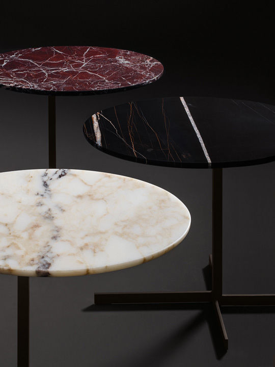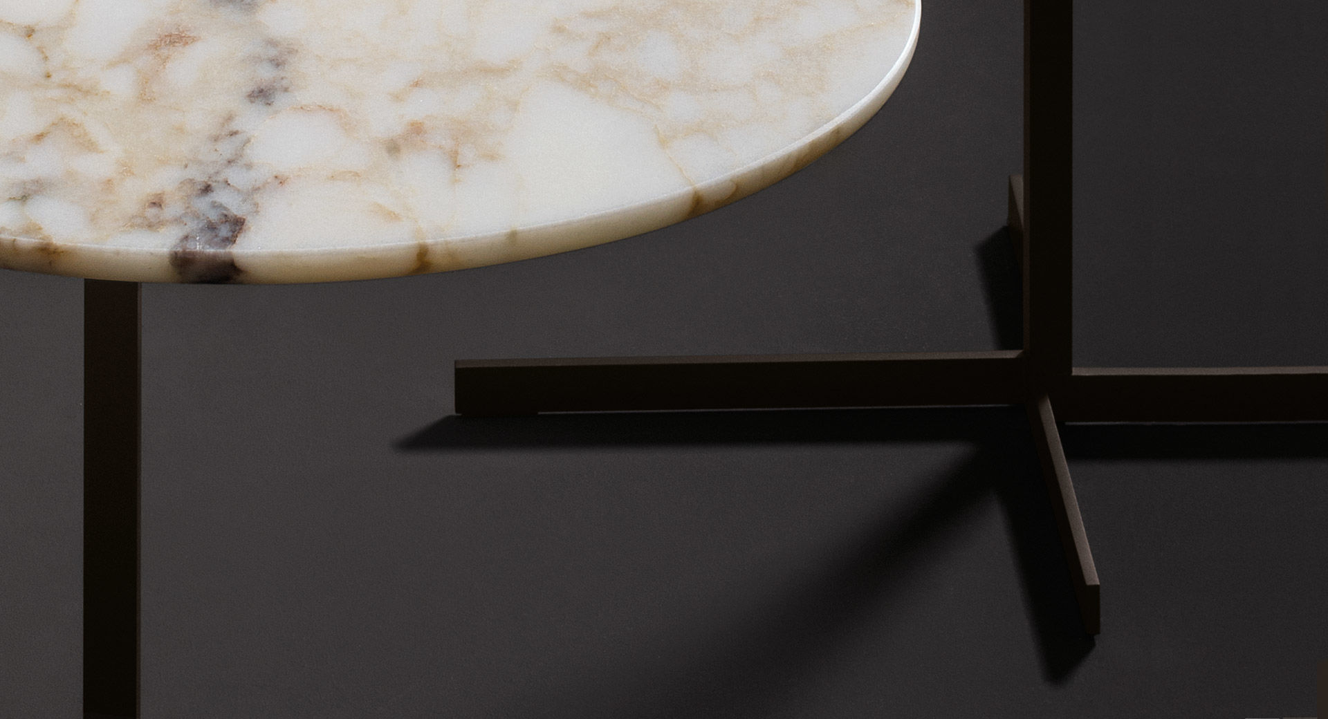 这款优雅的桌子专为配合新系列中的扶手椅和沙发而设计,将青铜色金属的时尚底座与豪华的大理石台面搭配在一起。
