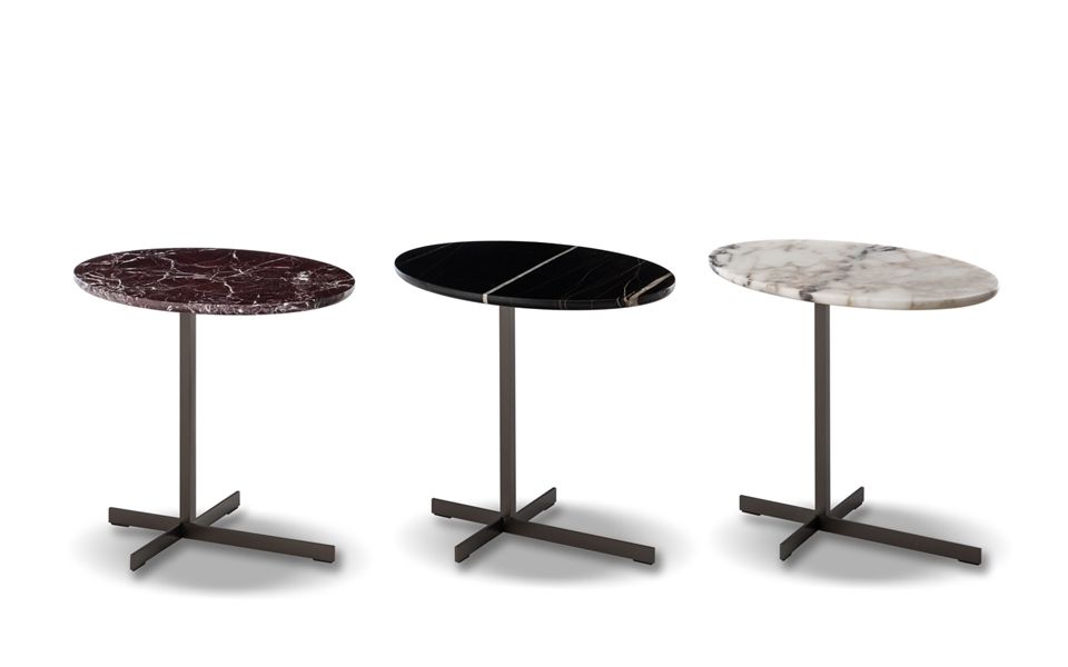 Joy边桌有新版本,椭圆形大理石台面与底座形成鲜明对比,营造出独特的不对称效果,使Joy"Jut Out"与新系列中的沙发和扶手椅特别匹配。底座,其特征的交叉图案图案来自青铜表面金属。Joy "Jut Out"的顶部具有圆润的边缘,并有精选的珍贵大理石可供选择:Arabescato Purple,Sahara Noir和Rosso Levanto,均具有抛光饰面。
