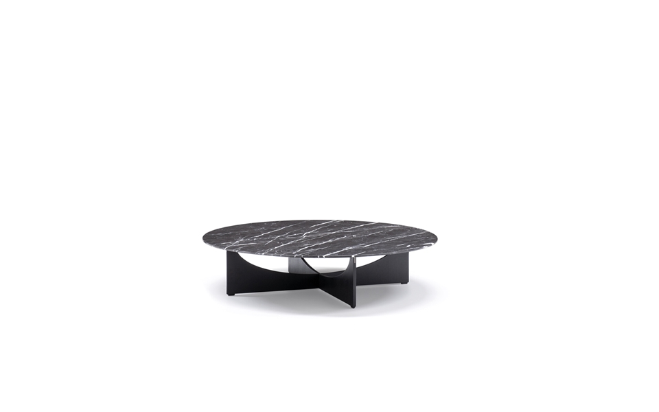该系列还包括小型餐厅和休闲扶手椅 - 只有实木支腿 - 以及一种尺寸的咖啡桌,坐在标志性的X形铝制底座上,上面覆盖着灰烬,带有摩卡清漆饰面,圆形或方形顶部,采用Bianconero大理石或拉丝白蜡木制成,带有摩卡开孔漆面。