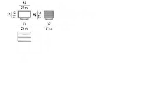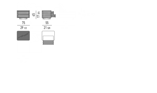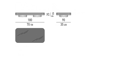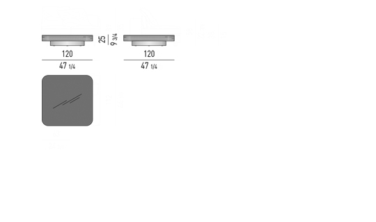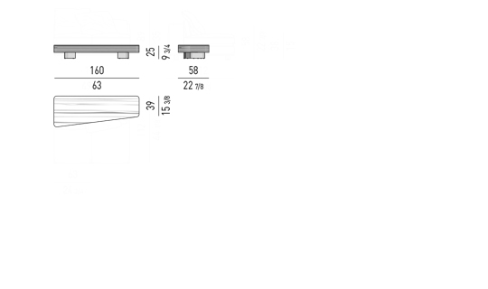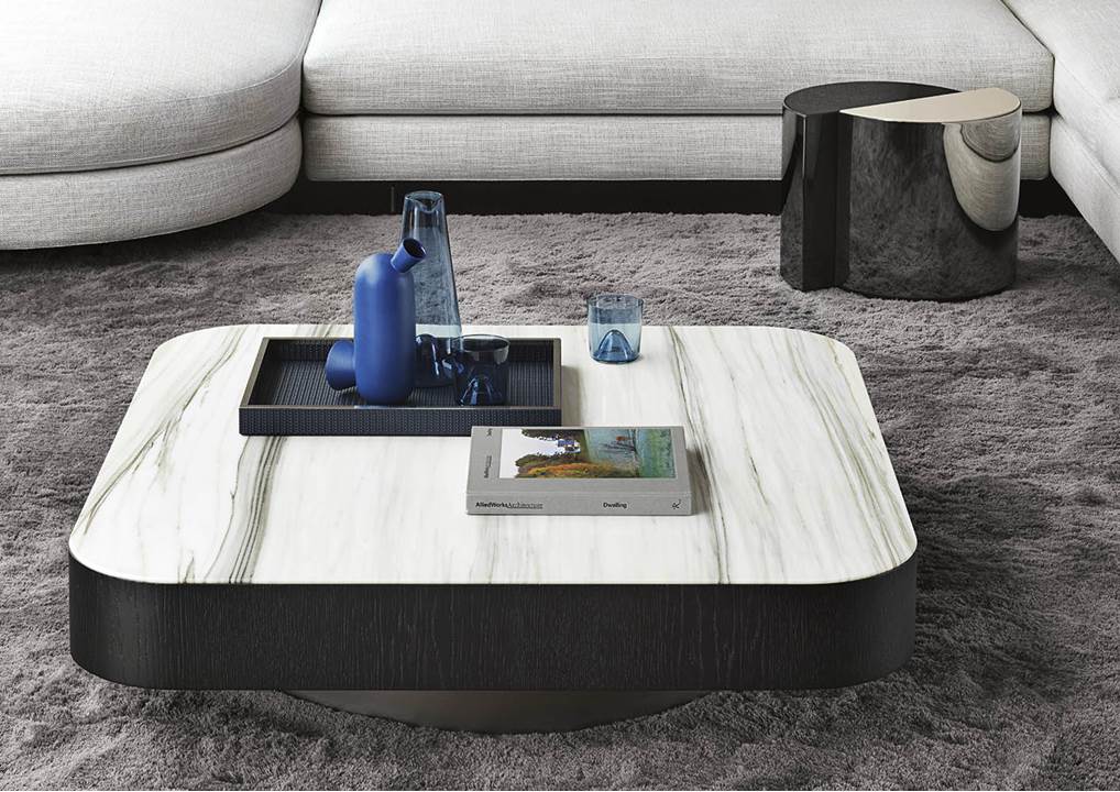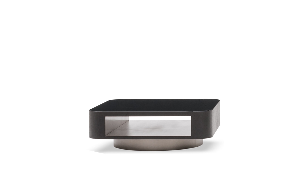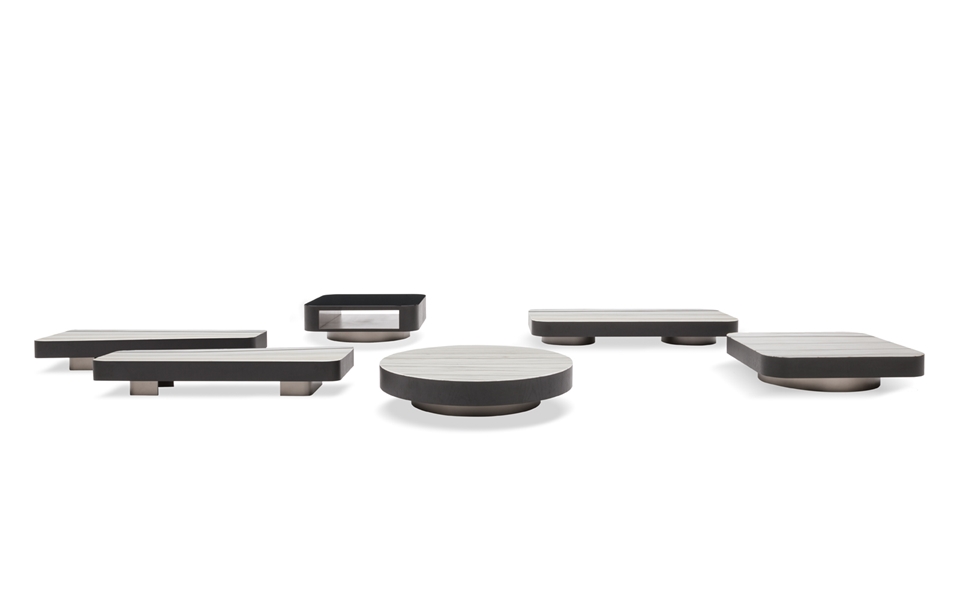 Milton 边桌由悬挂的几何体量和降低的高度并置而成,有圆形、方形、矩形和梯形版本。圆角使几何形状变得柔和,让人想起亚历山大"下降"座椅系统的蜿蜒曲线。它们的特点是对七十年代线条的更现代和装饰性的重新诠释,展示了珍贵材料和有机几何形状组合的精致游戏。
