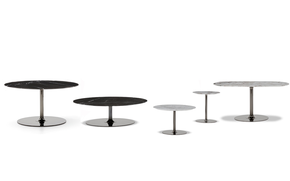 在休息室和边桌版本中构思,它具有卡拉卡塔或石灰色大理石的珍贵顶部。