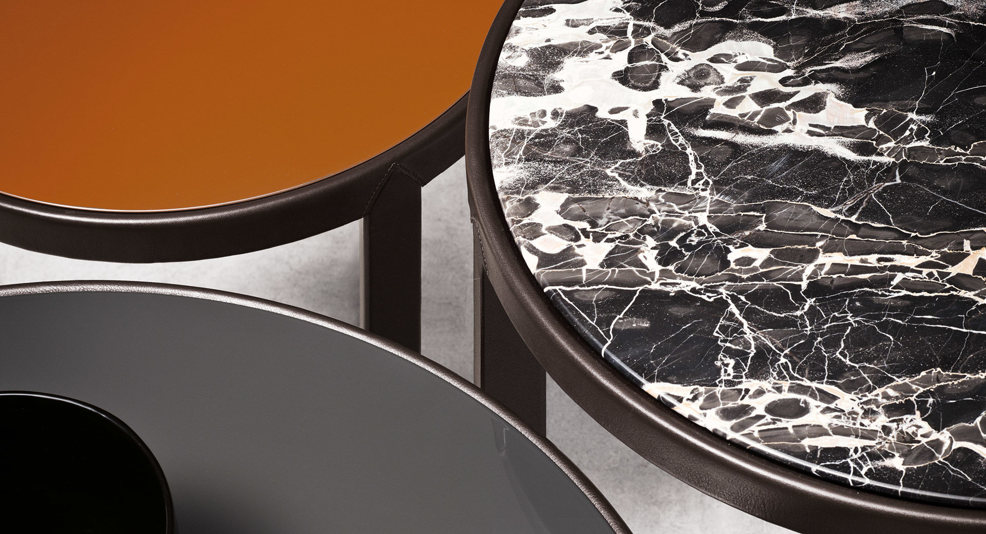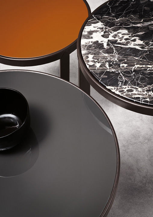 一系列各种尺寸的咖啡桌,其优雅的表达由底座的皮革内饰定义,采用手工制作的工艺用于行李箱。桌面有三种色调的光泽漆,或Portoro大理石。证明Minotti不仅提供桌子,还提供能够创造高档精致生活空间的精美物品。