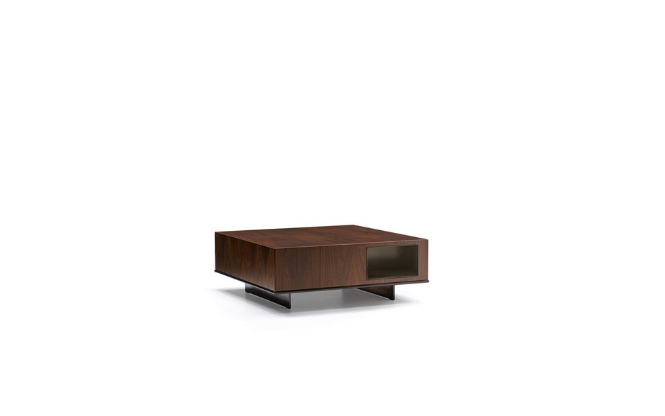 该系列包括三张咖啡桌,采用珍贵的盒子形式,具有严格的几何体积。这些主机储物箱采用铝制衬里,带有白兰地色清漆缎面饰面。