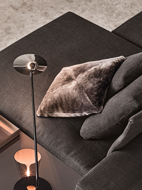 羊毛皮靠垫有米色、棕色、绿色和石墨色可供选择,为Minotti系列中的任何座椅元素增添了一丝精致的温暖和优雅。