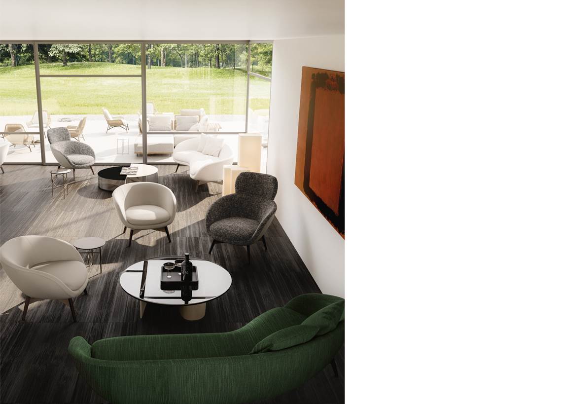 该形状采用复古线条,以令人难以置信的精致廓形对其进行现代化改造,包括座垫和外部覆盖物,采用织物或皮革制成,纹理极具魅力。