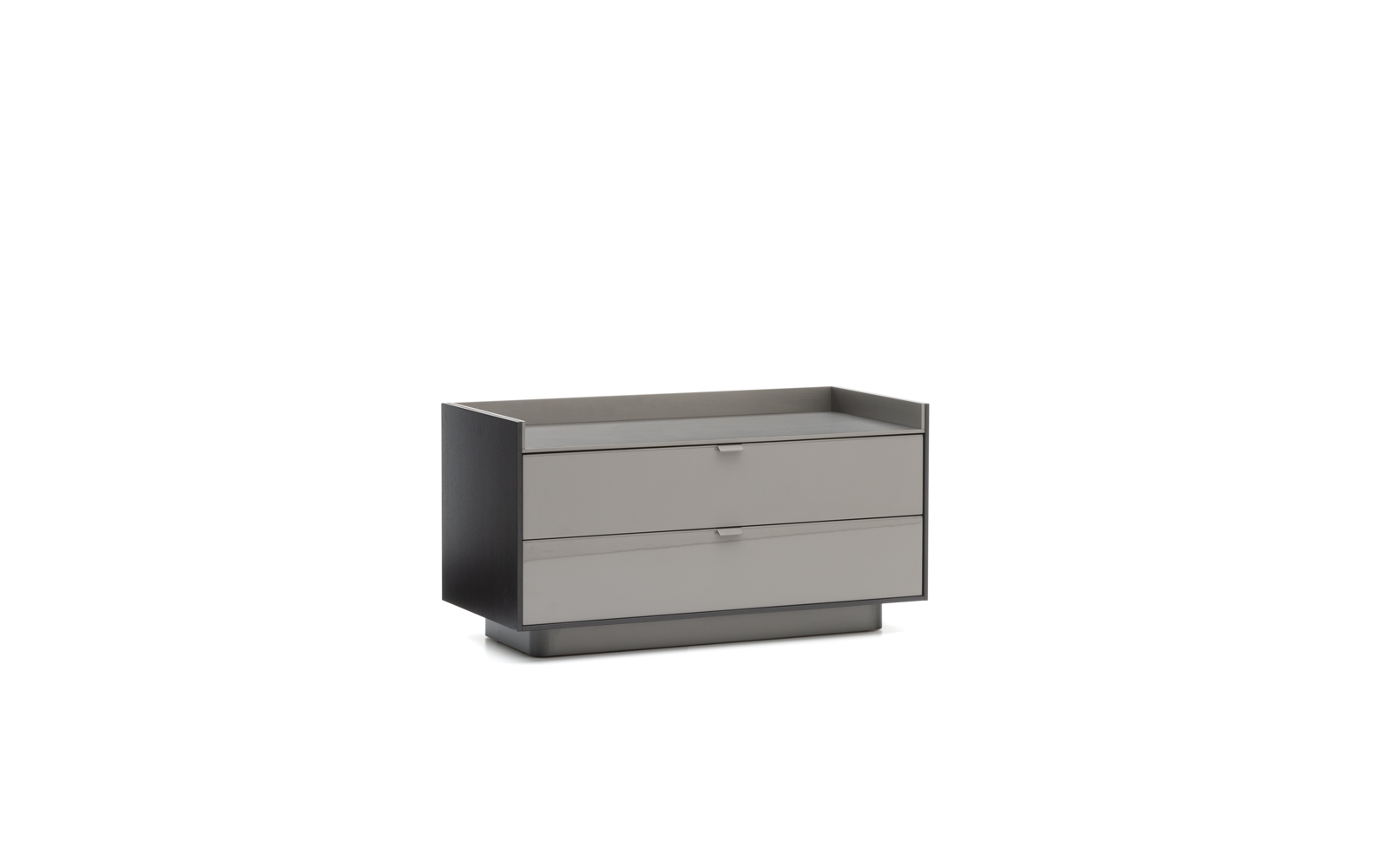 Darren明显的形式简约及其理性、准确的设计,隐藏着一件远比眼前更复杂、结构错综复杂的作品。Moka色白蜡木的中心元素具有三面封闭的搁板,衬有麦芽色缎面铝条,并站在相同饰面的底座上。