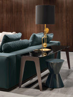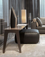 流线型金属支腿采用青铜漆面,可搭配亮漆砂或泥面、高光黑色透视玻璃或棕色大马士革大理石。