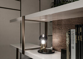 多种选择使得可以选择带有彩色貂皮饰面的Sucupira贴面背板,以及暖灰色光泽漆面的厚搁板。