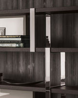 道尔顿Chrome书柜以其高度精致的现代外观和明显的形式简约,以其时尚的饰面和材料组合而著称。