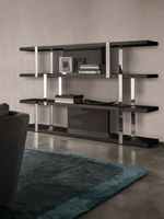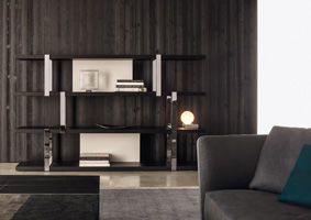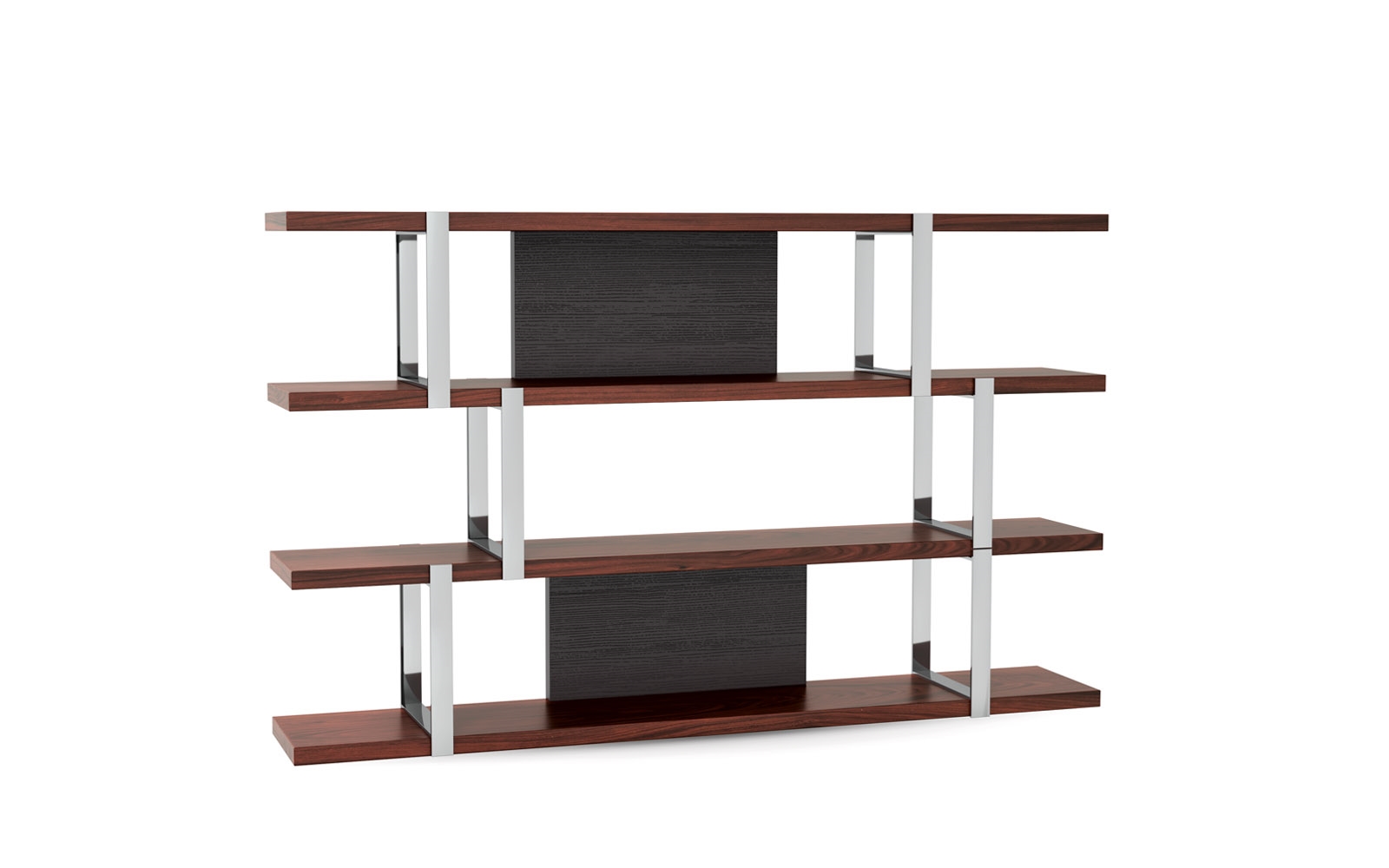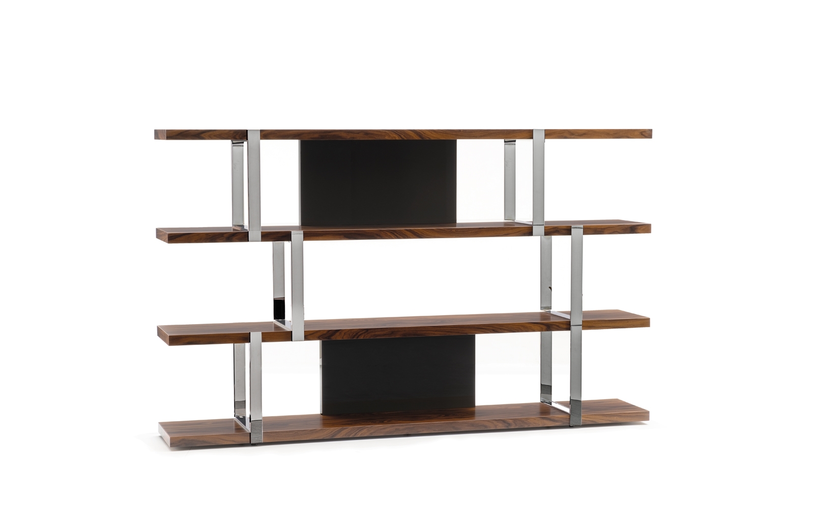道尔顿铬旨在以个性和个性来表征生活空间,具有两种不同版本的光泽铬金属框架:磨砂黑橡木的厚厚搁板与光滑的漆面暖灰色或花岗岩后面板相匹配,或带有光滑漆白色或花岗岩背板的Santos palisander搁板。