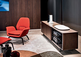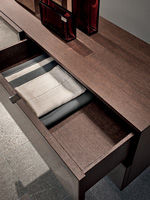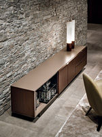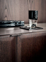 Morrison底座有三种版本:在地板上,或高度为12厘米和25厘米。新的橡木开孔饰面被添加到烟草染色的颜色,加入摩卡。围绕周边的斜边定义了抽屉门和前部的线条,除了皮革衬里版本外,抽屉还具有沙子,青瓷,泥土,花岗岩和摩卡的光泽漆面。还有一个版本,带有全橡木烟草门和漆缎面泥结构。