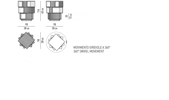 完全旋转, 它的特点是平行六面体形式的体积, 外边缘在摩卡色的温格木和光泽的油漆暖灰色内部, 它站在一个圆形基地与光泽锡色的表面。