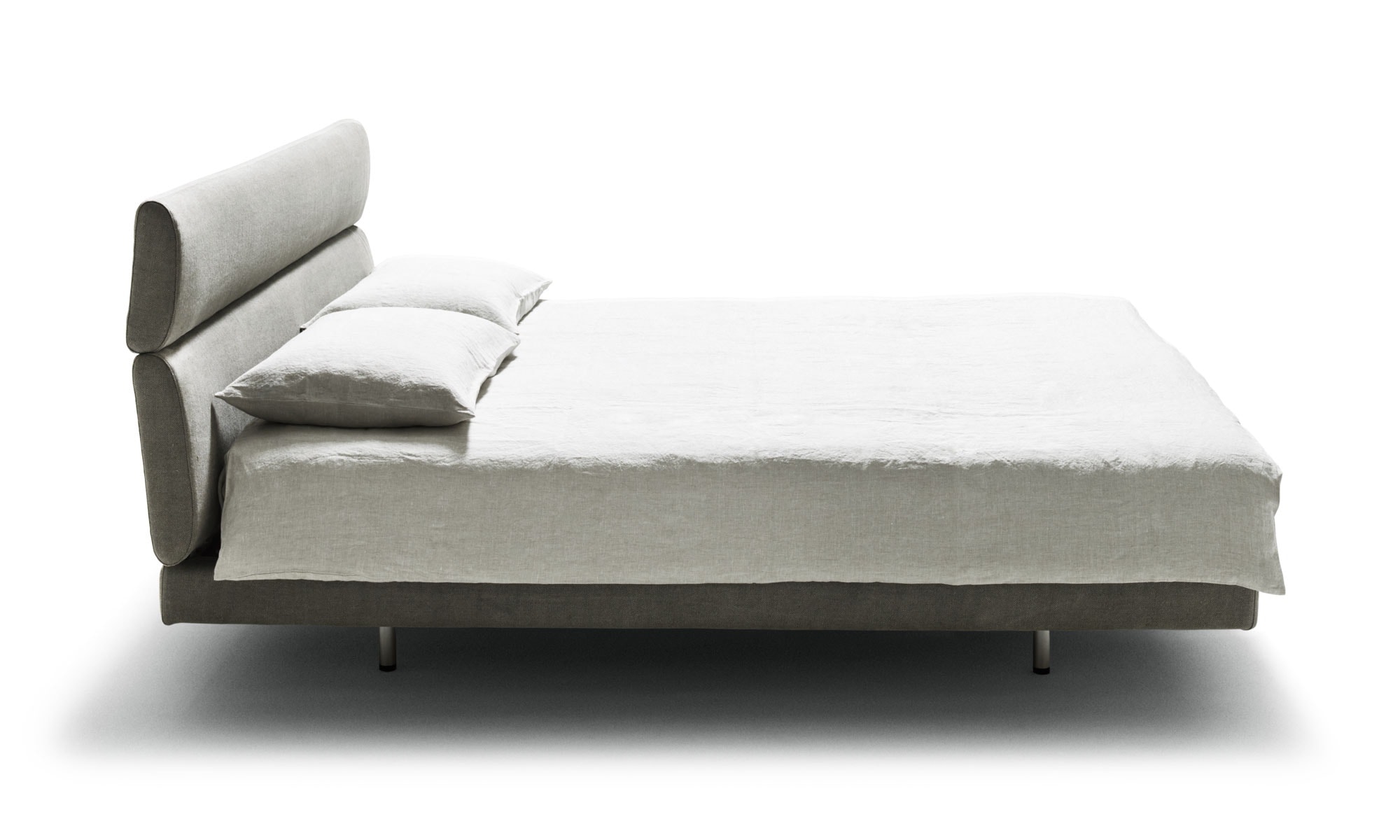 休息的邀请:Vico Magistretti的经典设计具有独特而平衡的轮廓,由带衬垫的双杠床头板和带山毛榉木板条的大型舒适床架创造,两者均带有易于拆卸的盖子。特别舒适,非常适合阅读,放松,当然还有睡觉。