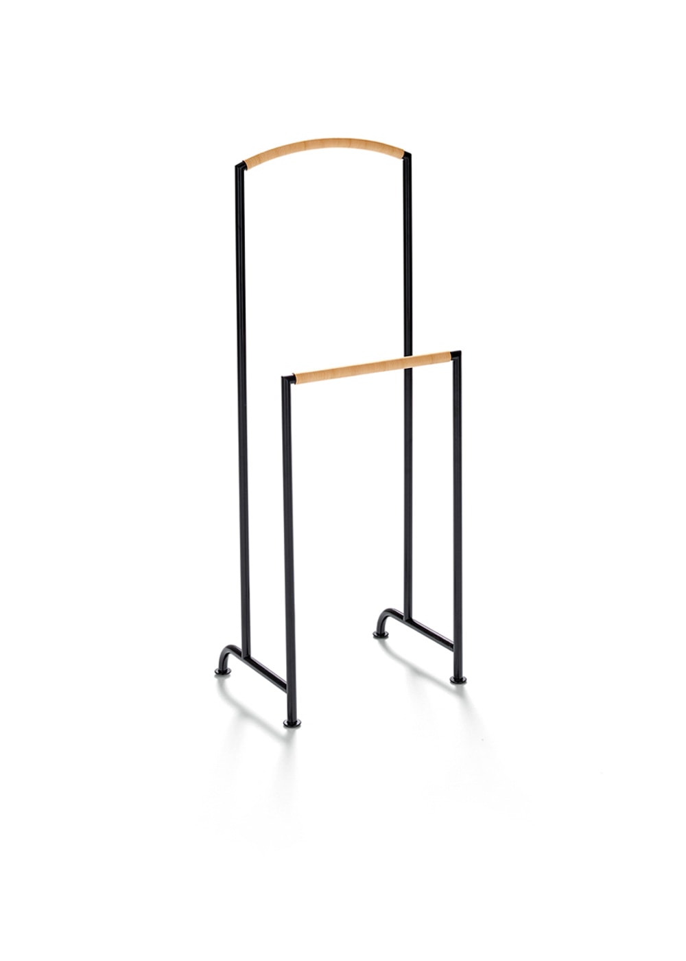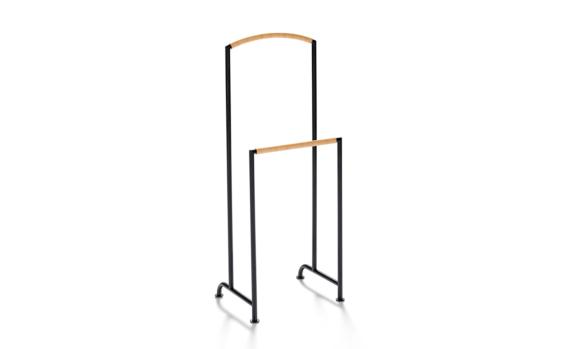 经典的当代版本。安妮特·朗(Annette Lang)设计的代客泊车架非常简单:黑色管状钢覆盖着天然皮革绳索,衣服可能会滑落。在卧室里是完美的,你需要一些实用的东西来挂东西。