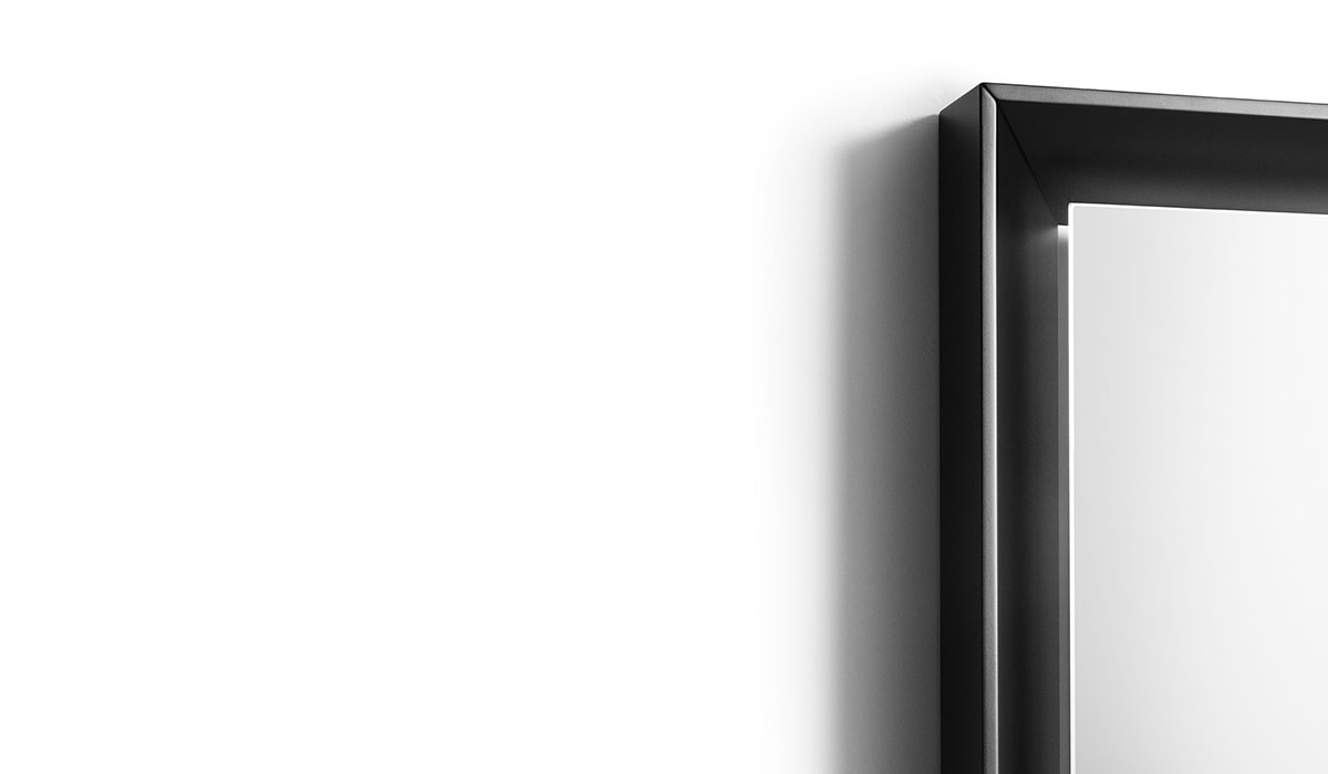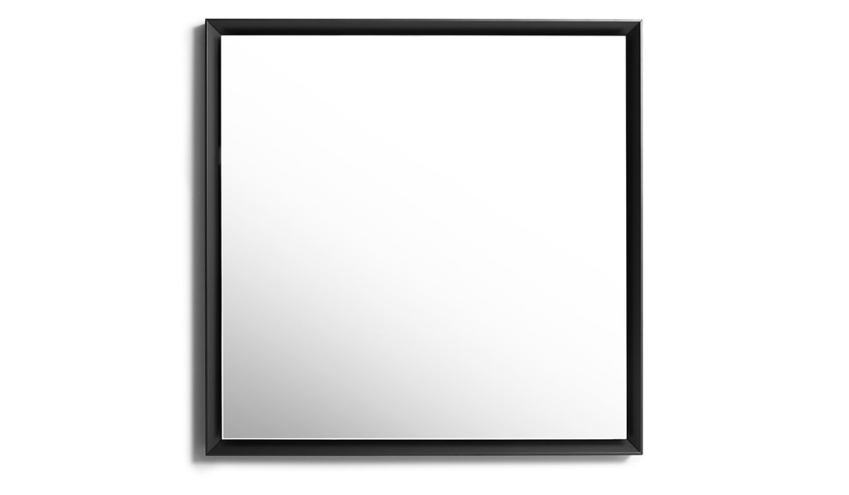 SP14 镜子周围的窄哑光黑色框架呈方形,斜角。简单但不普通的配件选择房屋的一角来构图并反映不断变化的图像。