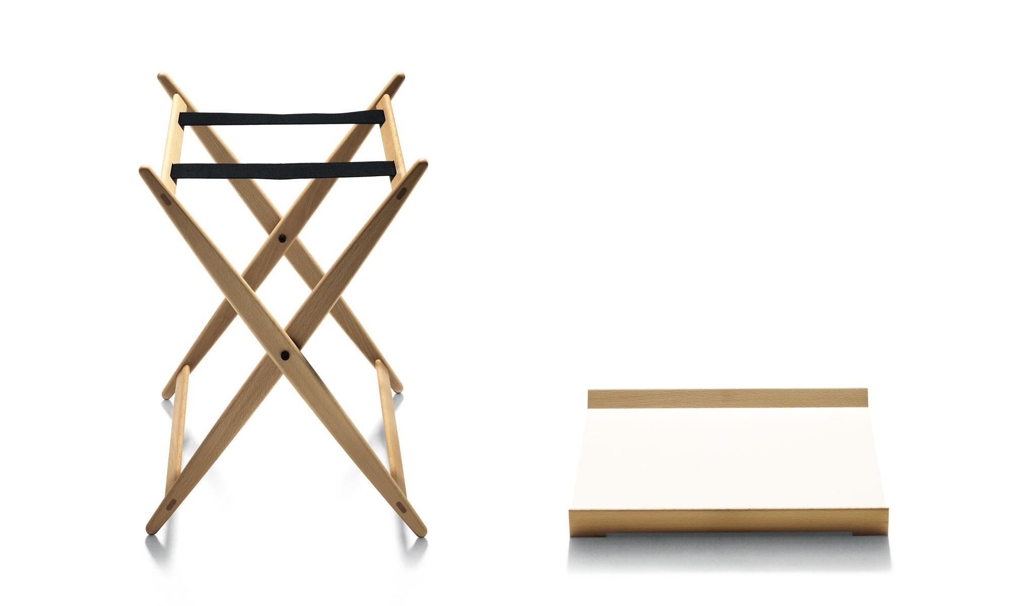 这是一个更小,更高的Mate版本。阿基里·卡斯蒂廖尼(Achille Castiglioni)的触感可以在这个托盘和小桌子上看到:沙发旁边或卧室里的谨慎伴侣。这件经典单品优雅地执行了多项任务和功能,并具有令人放松的简单性。它超轻且易于移动,由天然山毛榉或木炭色白蜡木的折叠底座和可放置在任何需要的地方的托盘组成。