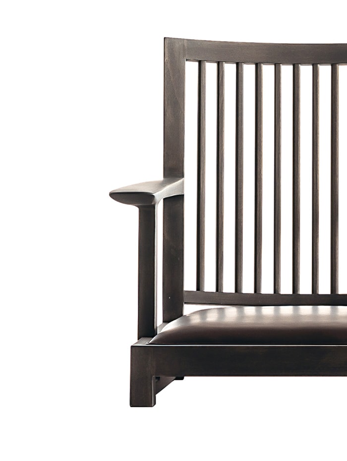 这个物体属于日本的生活方式,但它增加了当代的扭曲。"Zaisu"是直接坐在地板上的椅子,结合了传统与现代。形成背部的每个垂直元素都经过手工打磨,以获得略微弯曲的边缘,使椅子真正舒适,并完美平衡过去和未来。