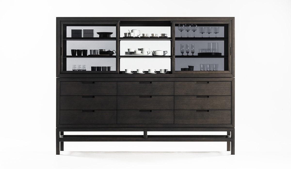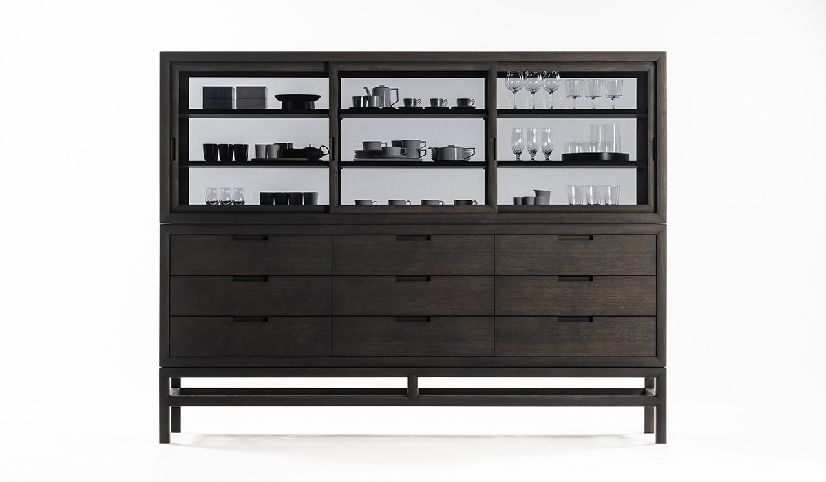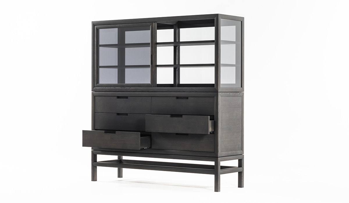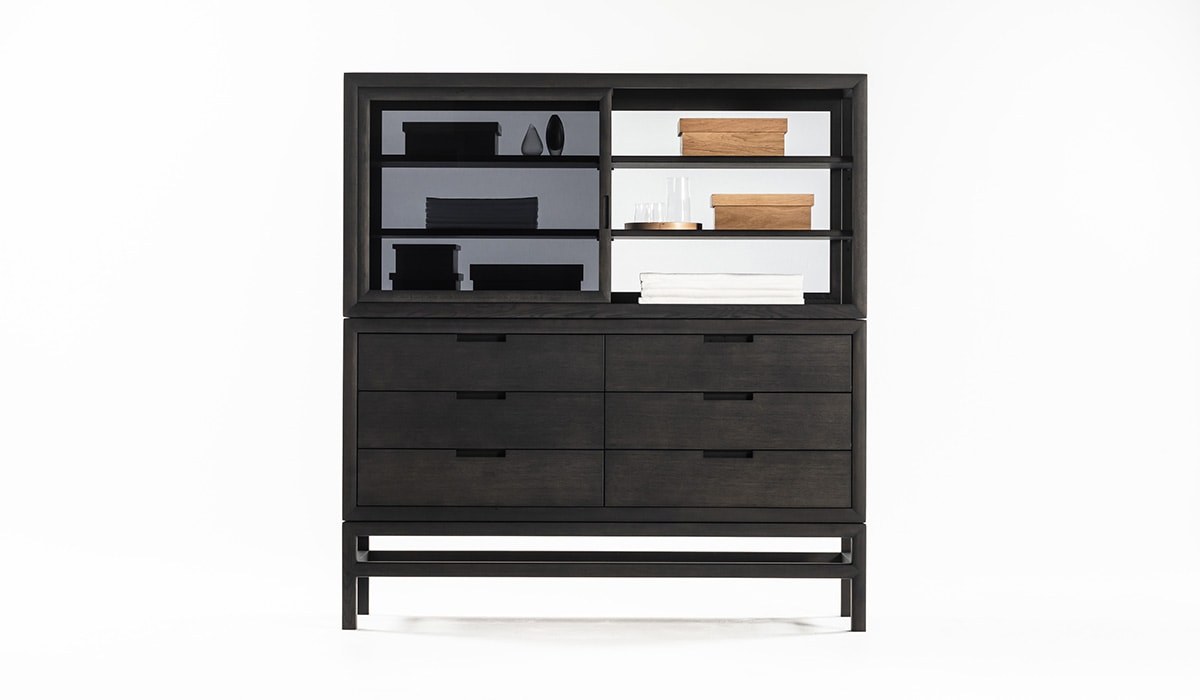 这件作品忽略了严格的规则,即在不同的房间中为不同的功能占据一席之地。厨房里有一个宽敞整洁的橱柜,卧室里有一个用来存放衬衫和套头衫的梳妆台,也是书房里存放文具和文件的理想场所。静音抽屉是一种优雅,实用和谨慎的存在,由固体漂白或炭灰色橡木制成。