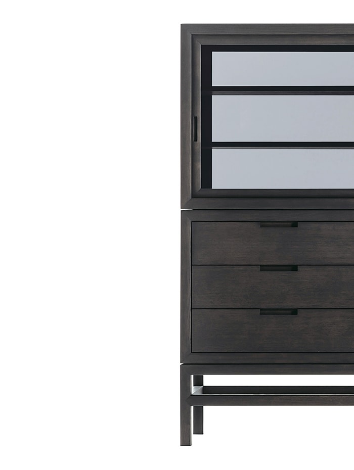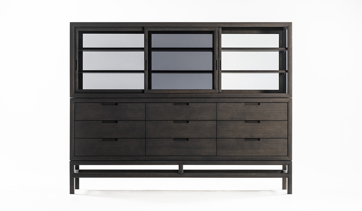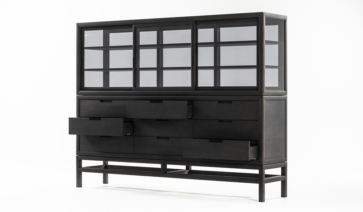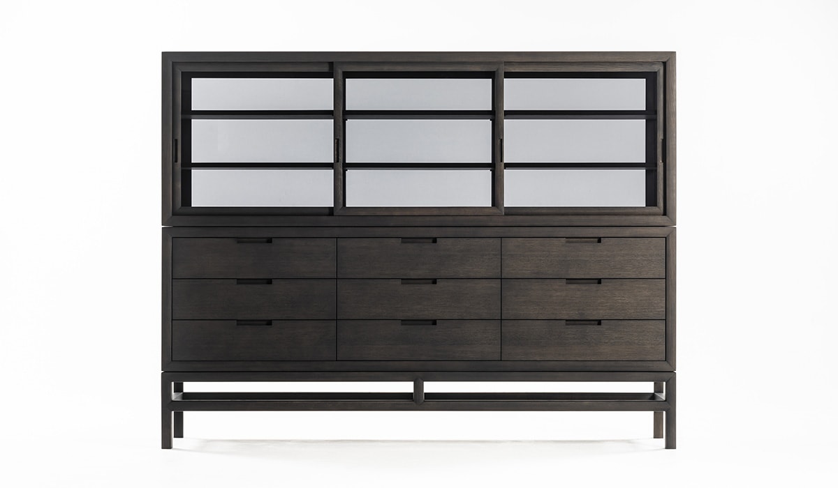 这件作品忽略了严格的规则,即在不同的房间中为不同的功能占据一席之地。厨房里有一个宽敞整洁的橱柜,卧室里有一个用来存放衬衫和套头衫的梳妆台,也是书房里存放文具和文件的理想场所。静音抽屉是一种优雅,实用和谨慎的存在,由固体漂白或炭灰色橡木制成。