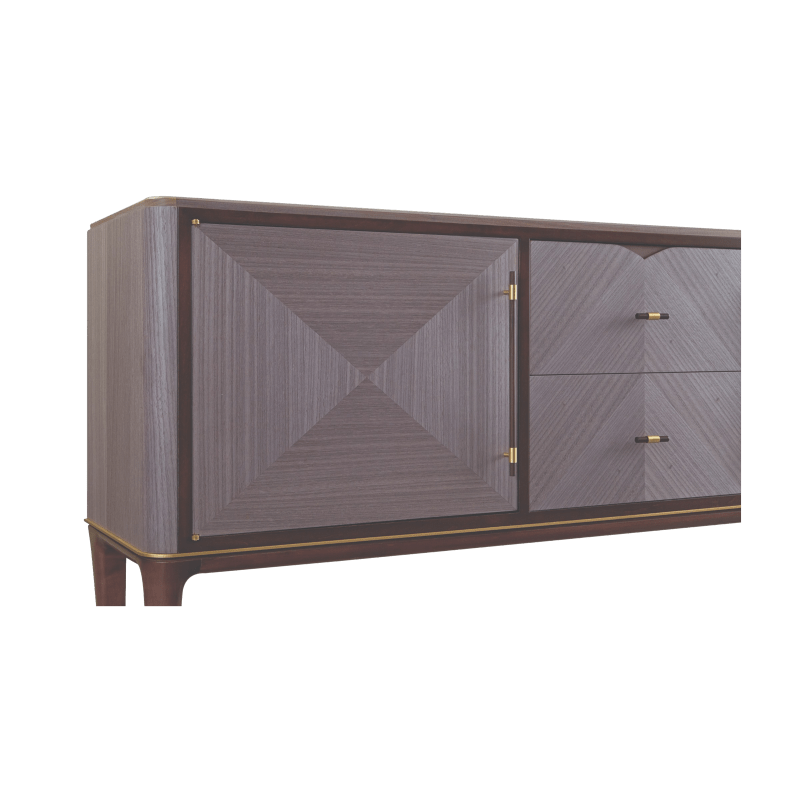 描述:这款餐边柜具有两个抽屉和两个门,材质为椰树木,手柄部位为黄铜,结构坚固耐用。