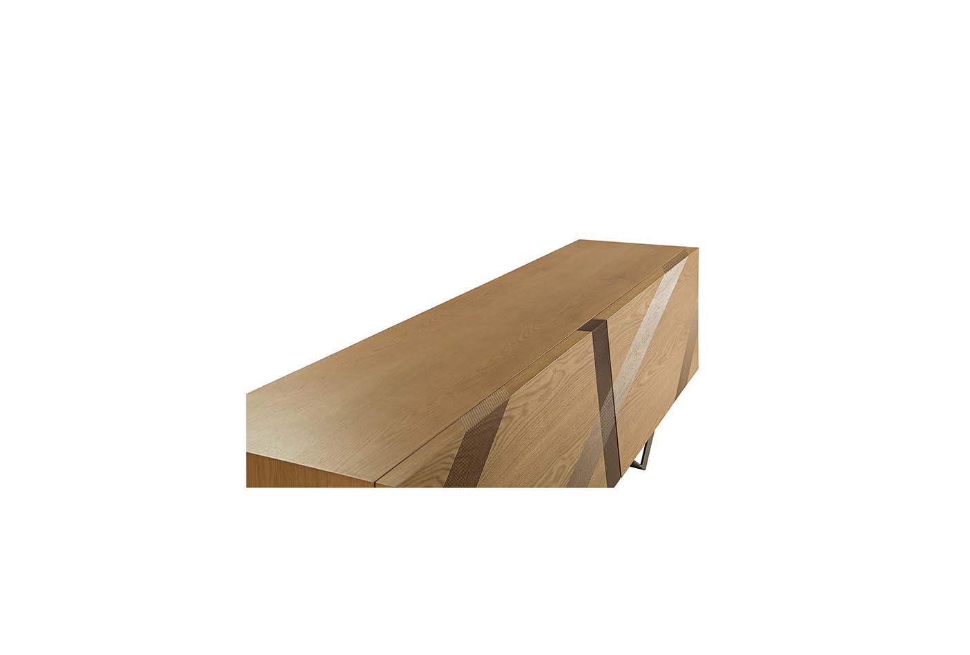 餐边柜采用MDF和工程复合木板,2个对准门,厚橡木单板上有凹槽。1个内部抽屉,推开式机构,1个托盘,采用8毫米厚的玻璃。