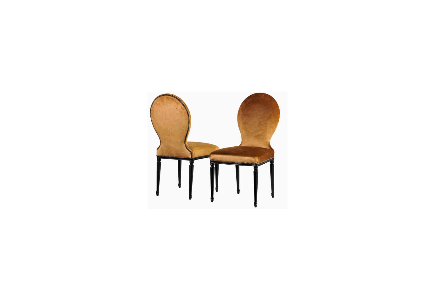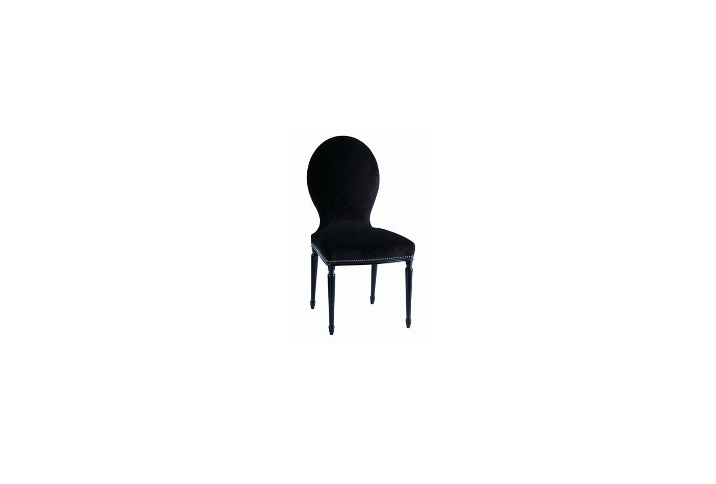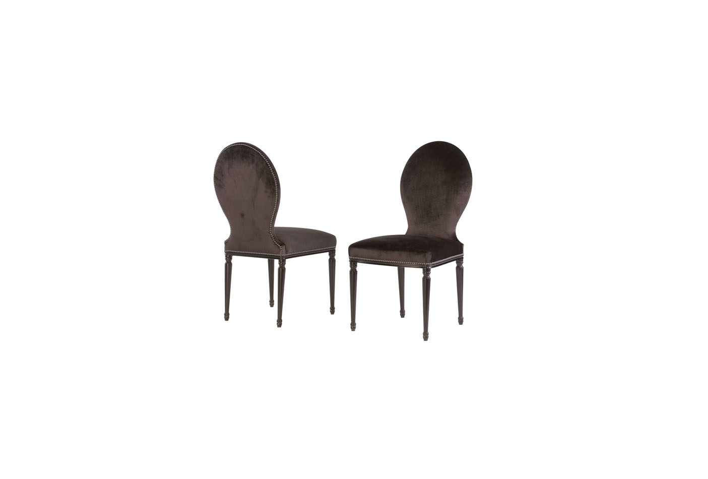 基材:无扶手餐椅 木料着色:Lauq Noir APB;描边:Neant ;泡钉:vieillis bronze ;面料:glenville indigo ref 1872-22 ;等级:6
