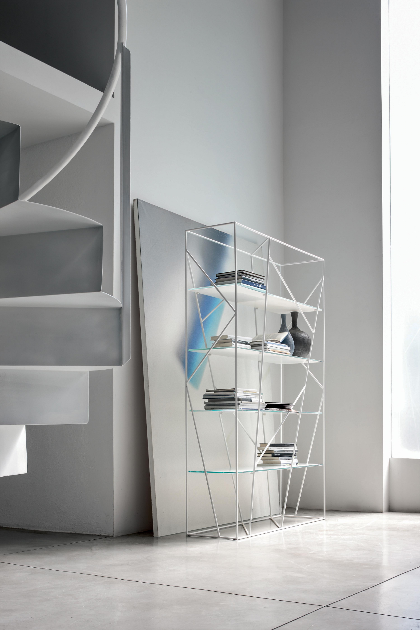 Naviglio 是一组线条,几何而精确,干燥而规则,形成了特定的中断空间马赛克。涂漆金属与玻璃或木架子融为一体,实现了空间和形状的完美平衡。