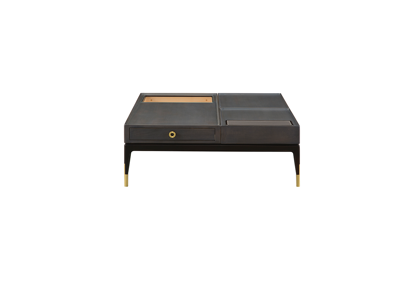 描述:2个抽屉和2个可调节支架结构,一个6毫米厚的玻璃托盘,装饰性缝合皮革。