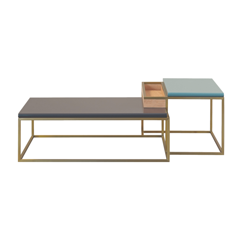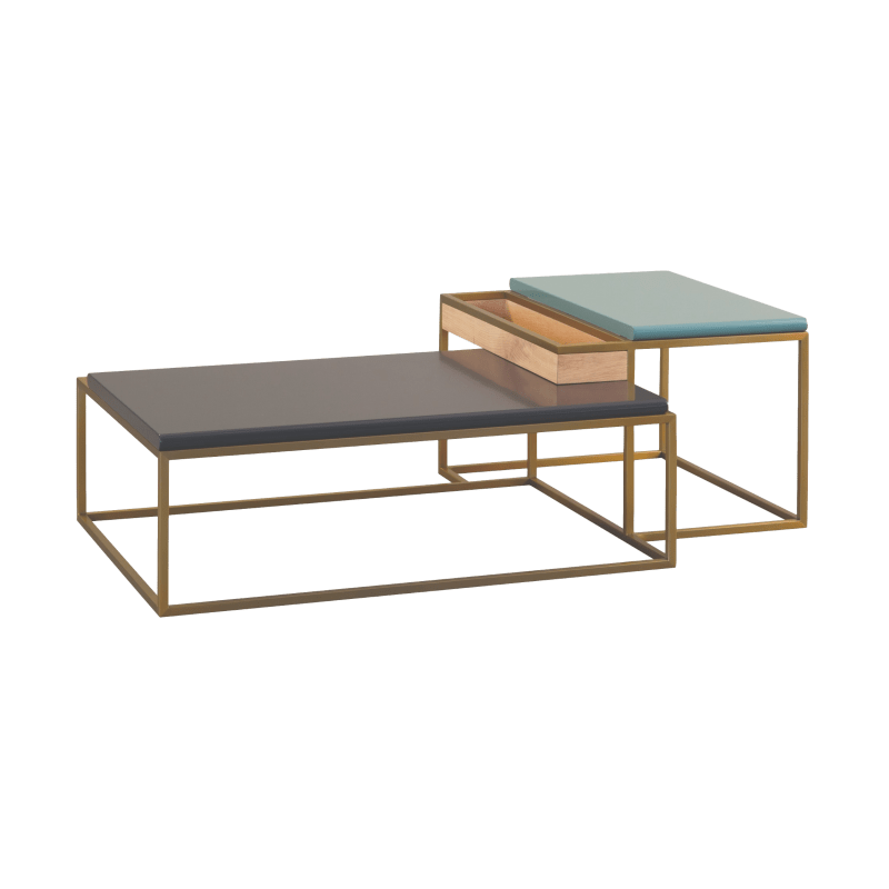 描述:这款茶几是Bruno Moinard设计的系列家具中的其中之一,最大特点是黄铜底座与皮布的完美搭配,面料精致,色彩时尚,与整个系列的外观完美搭配。