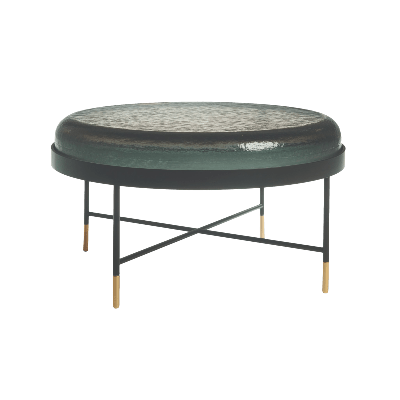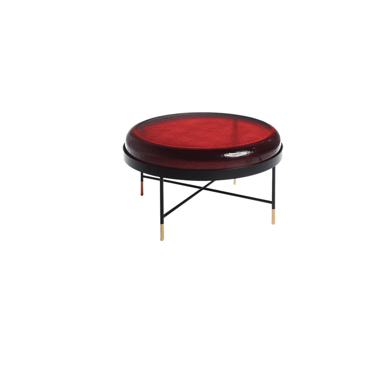 描述:这款茶几的表面采用彩色玻璃托盘,共有4种颜色可选,桌腿采用黑漆钢结构,表面镀铬或黄铜。
