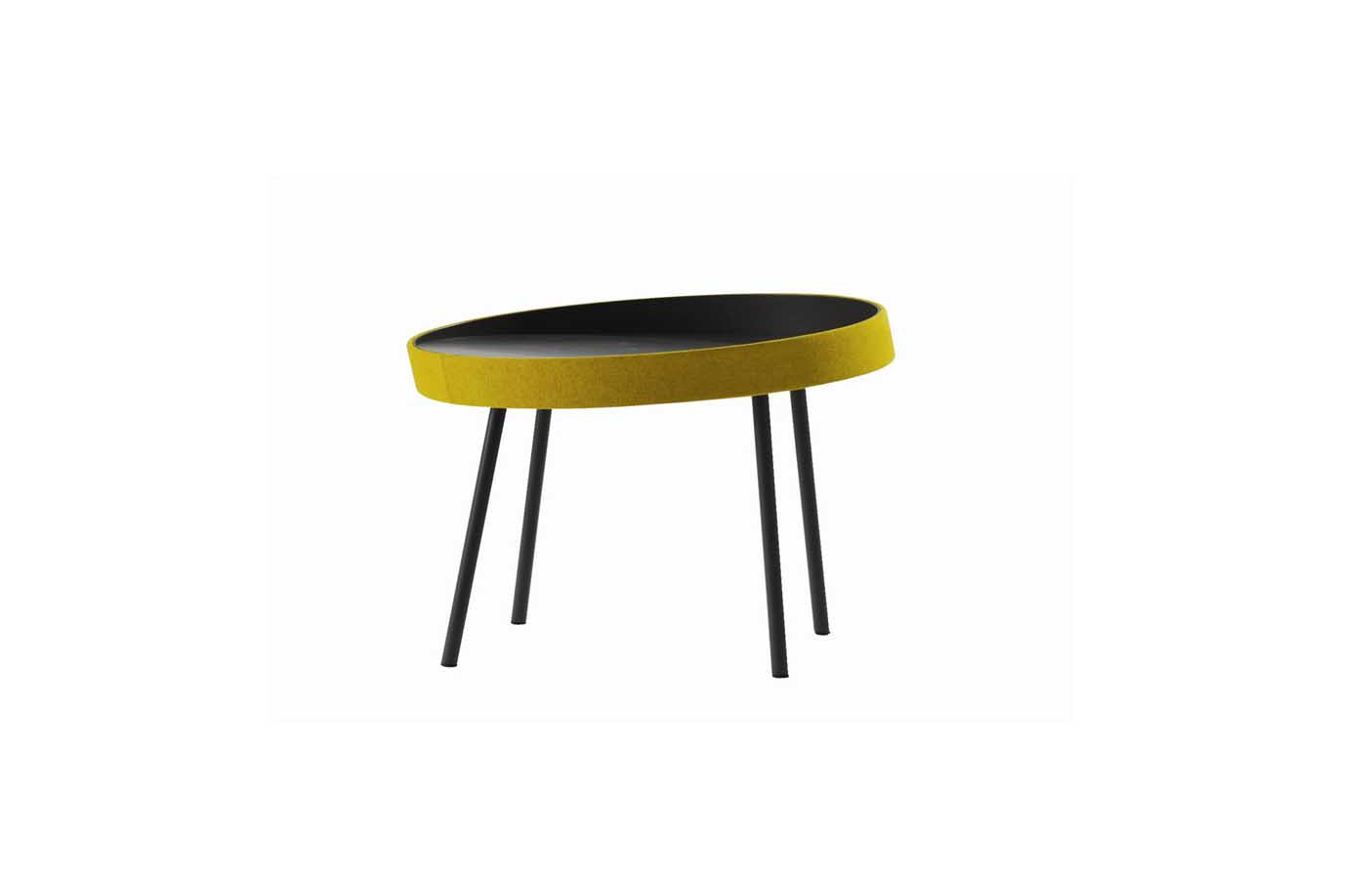 描述:桌面的基材为金属钢板,不对称的桌面设计具有倾斜的视觉效果,支腿的基材为不锈钢。